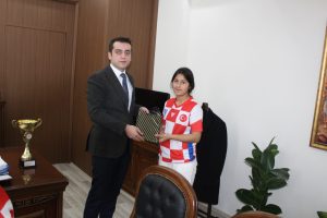 Okul Sporları Küçük Kızlar grubunda İl birincisi olarak bölge yarışmalarına katılmaya hak kazanan Saraykent İlçesi Çiçekli Fatma Ali İçen Ortaokulu hentbol takımı, İlçe Milli Eğitim Müdürü Ahmet Doğan, okul yöneticileri eşliğinde İlçe Kaymakamı Osman Kurt’u makamında ziyaret etti.