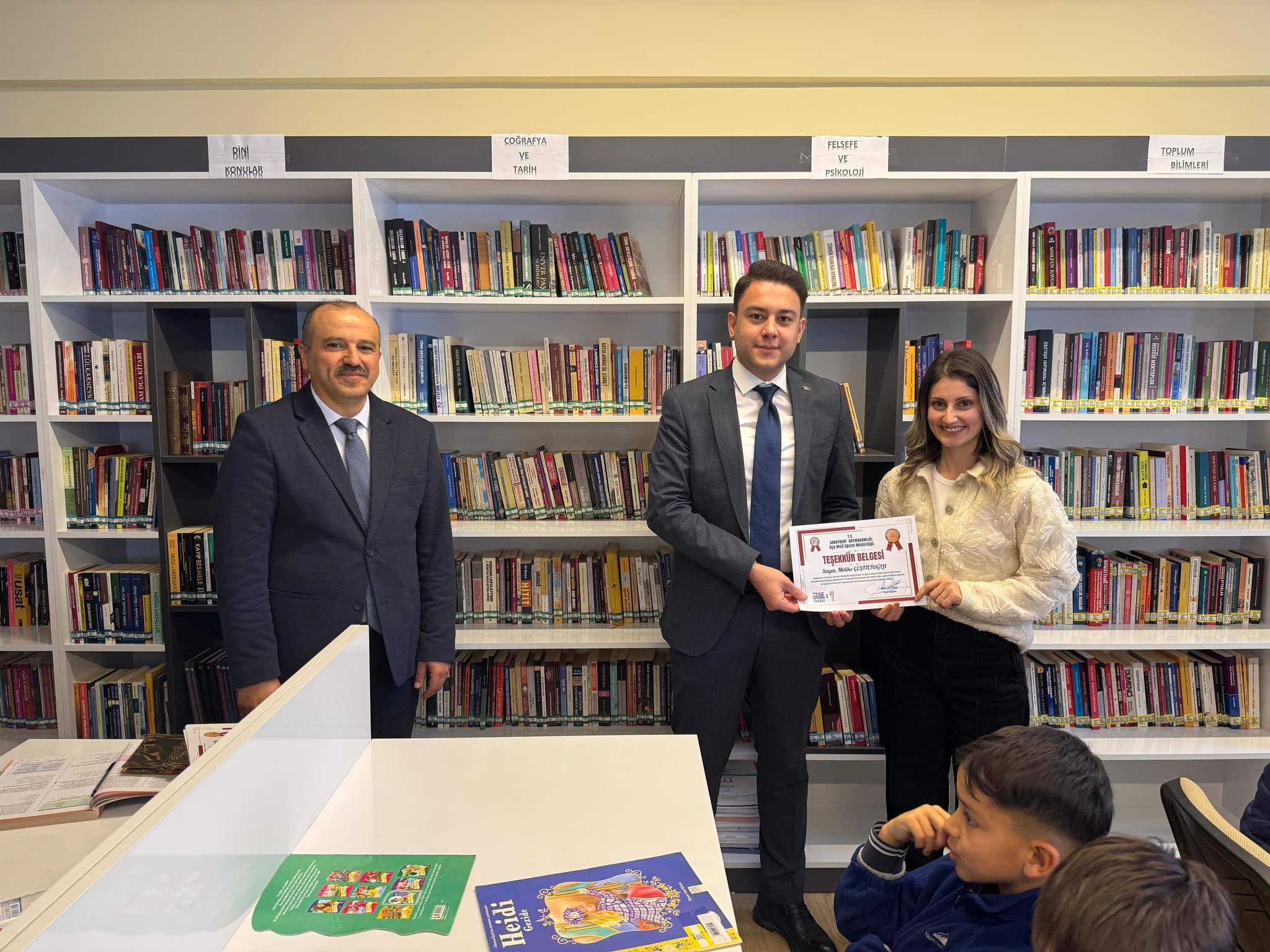 Kaymakam Mete Öztürk, yaptığı konuşmada, “Eğitimi sürekli geliştirmenin yolu, bilgiye erişim olanaklarını çeşitlendirmek ve yaygınlaştırmaktır. Kütüphaneleri aktif eğitim merkezlerine dönüştürmek, öğrencilerin araştırma ve okuma alışkanlıklarını geliştirmek için büyük bir adımdır” dedi. /Nazife EKİCİ