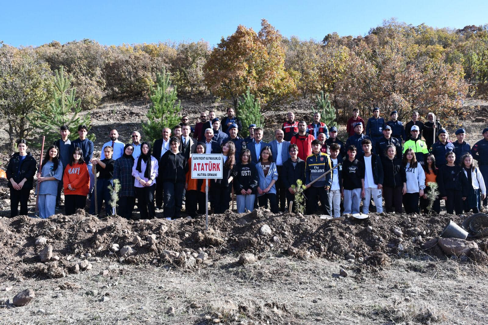 Saraykent ilçesinde, Cumhuriyetimizin 100. yılında düzenlenen 10 Kasım Gazi Mustafa Kemal Atatürk’ü Anma Günü etkinlikleri kapsamında hatıra ormanı oluşturuldu.