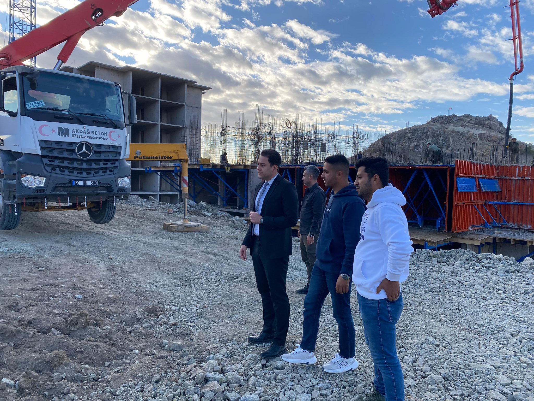 Saraykent Kaymakamı Mete Öztürk, Karşıyaka Mahallesi’nde yapımı devam eden 2. Etap Konut Projesi çalışmalarını yerinde inceledi.