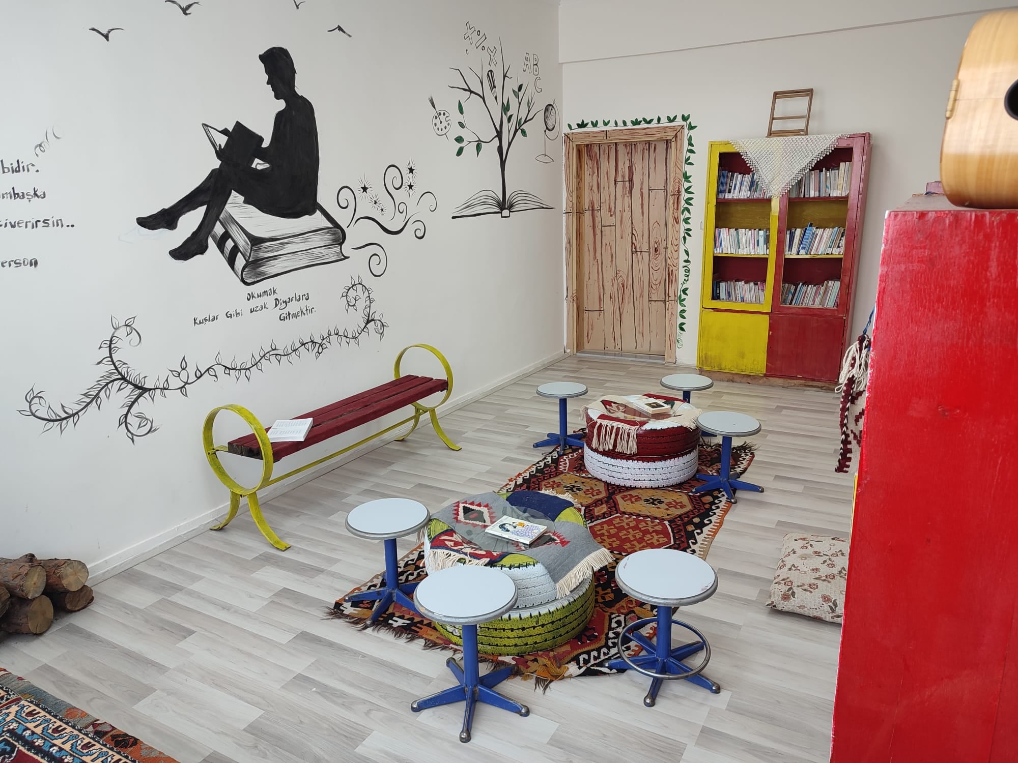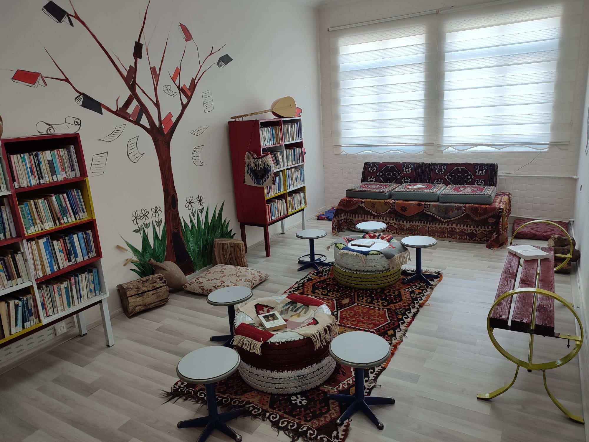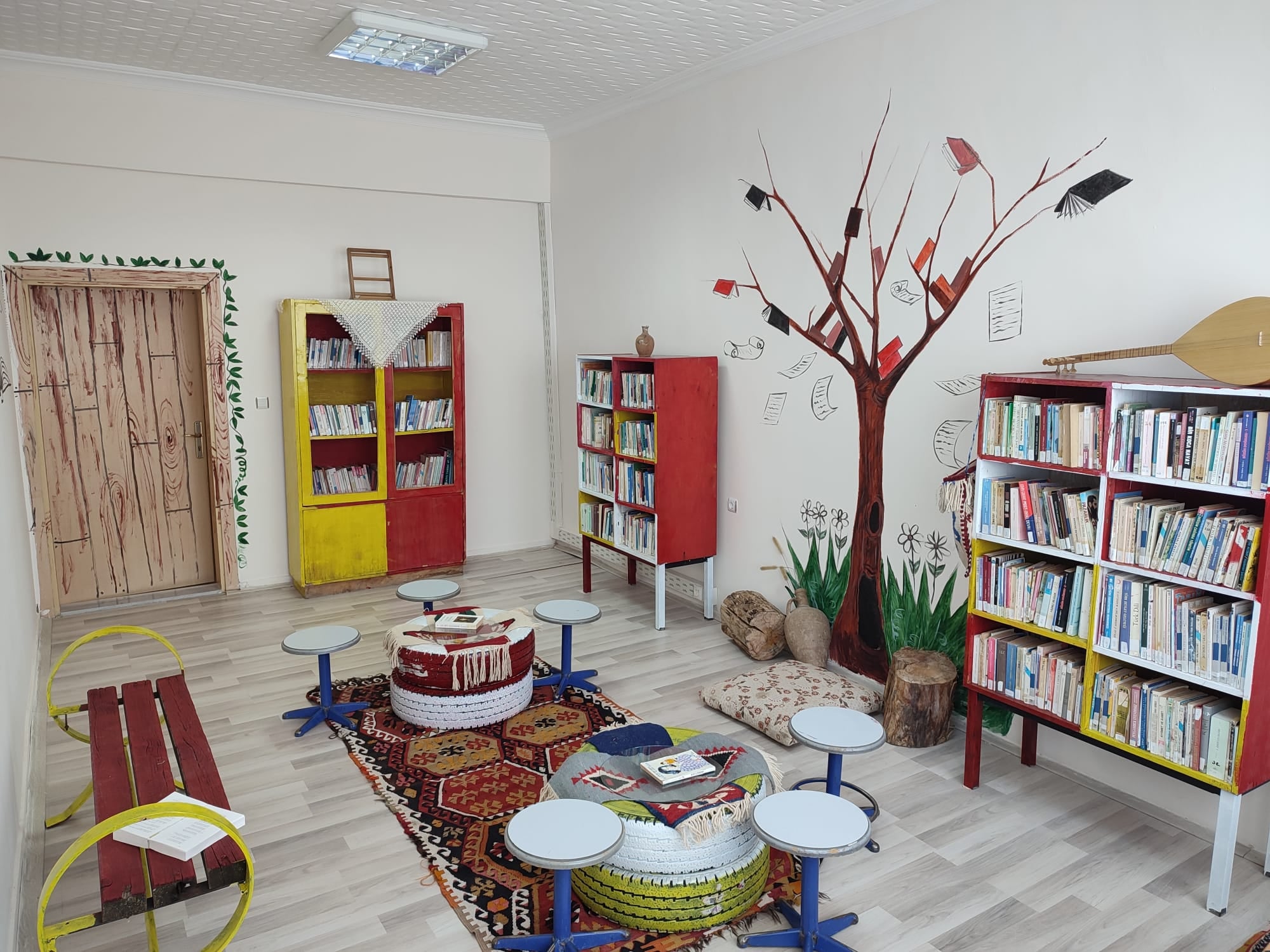 Saraykent Halk Eğitim Merkezinde öğrenci ve halkın hizmetinde olan kütüphane tamamen sıfır atık malzemelerden oluşturuldu.