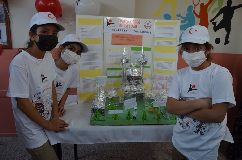 Hisarbey Ortaokulunda 7 öğretmenin danışmanlığındaki, 58 öğrenci tarafından hazırlanan 9 ayrı tematik alanda 17 farklı tasarım projesi sergilendi.