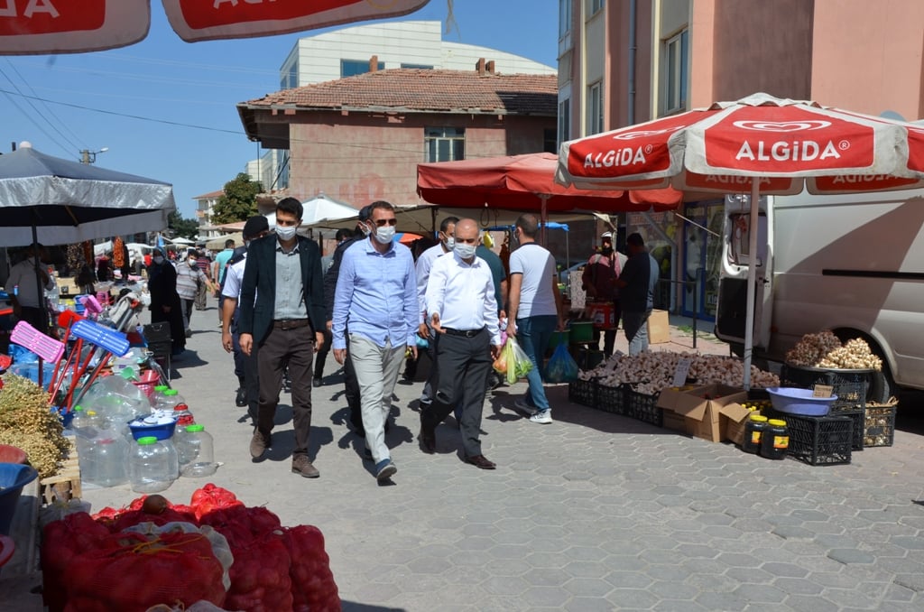 Kaymakam Işık ve Belediye Başkanı Açıkel, semt pazarı ve çarşı merkezini denetimde bulunarak, esnaf ve vatandaşlarla sohbet etti. Vatandaşlara maske kullanımı, sosyal mesafe ve hijyen konusunda bilgilendirmelerde bulunan Işık ve Açıkel, bu süreci bireysel değil toplumsal davranarak en hafif şekilde atlatabileceklerini ifade etti.