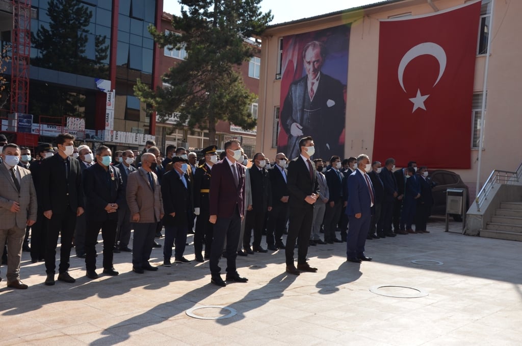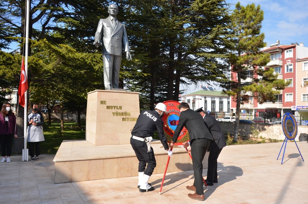 Sarıkaya’da Hükümet Konağı Atatürk anıtına düzenlenen çelenk sunma törenine İlçe Kaymakamı Samet Serin, Belediye Başkanı Av. Ömer Açıkel, daire amirleri ve siyasi parti temsilcileri, öğretmen ve öğrenciler katıldı.