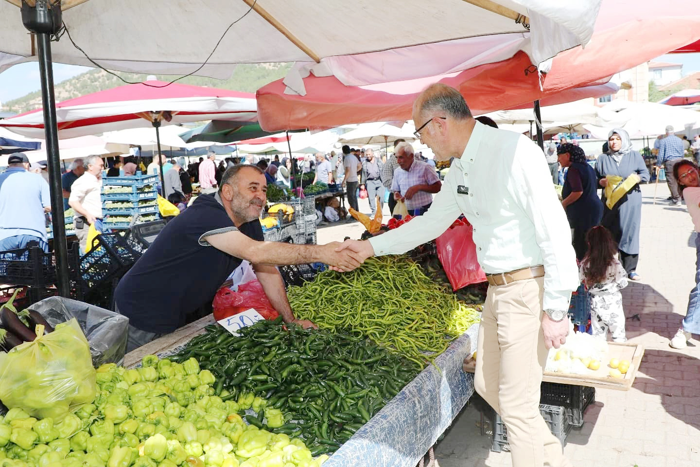 Çekerek Belediye Başkanı Üzeyir İnce, sebze pazarını ziyaret ederek esnaf