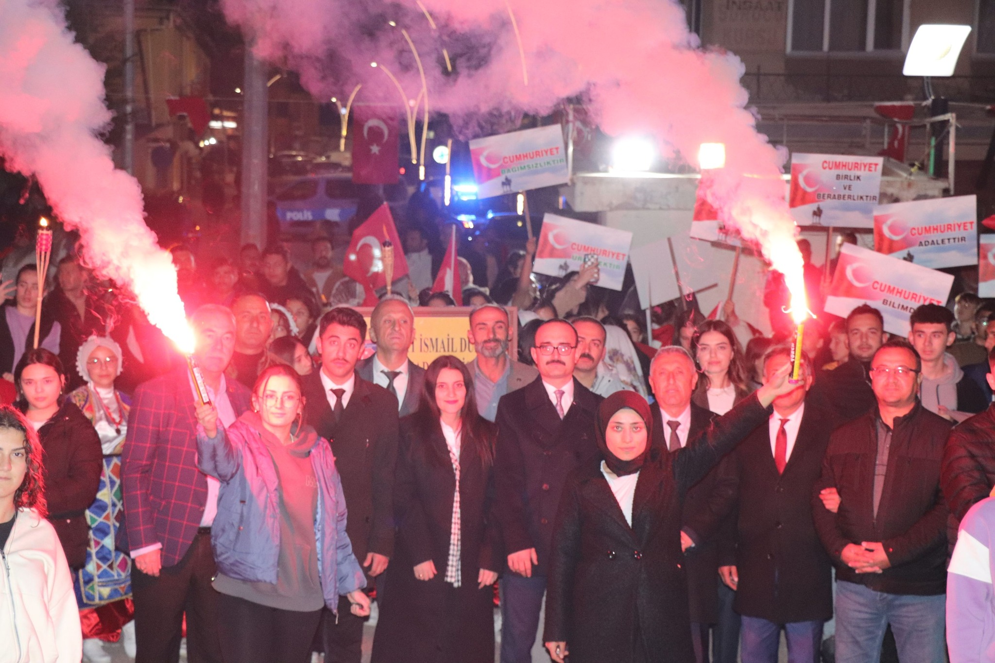 Etkinlik, Kaymakamlık önünden Atatürk Anıtı’na doğru gerçekleştirilen meşaleli Cumhuriyet yürüyüşü ile başladı. Yürüyüşe katılanlar, coşku dolu anlarla Cumhuriyet Bayramı’nın gururunu paylaştı.
