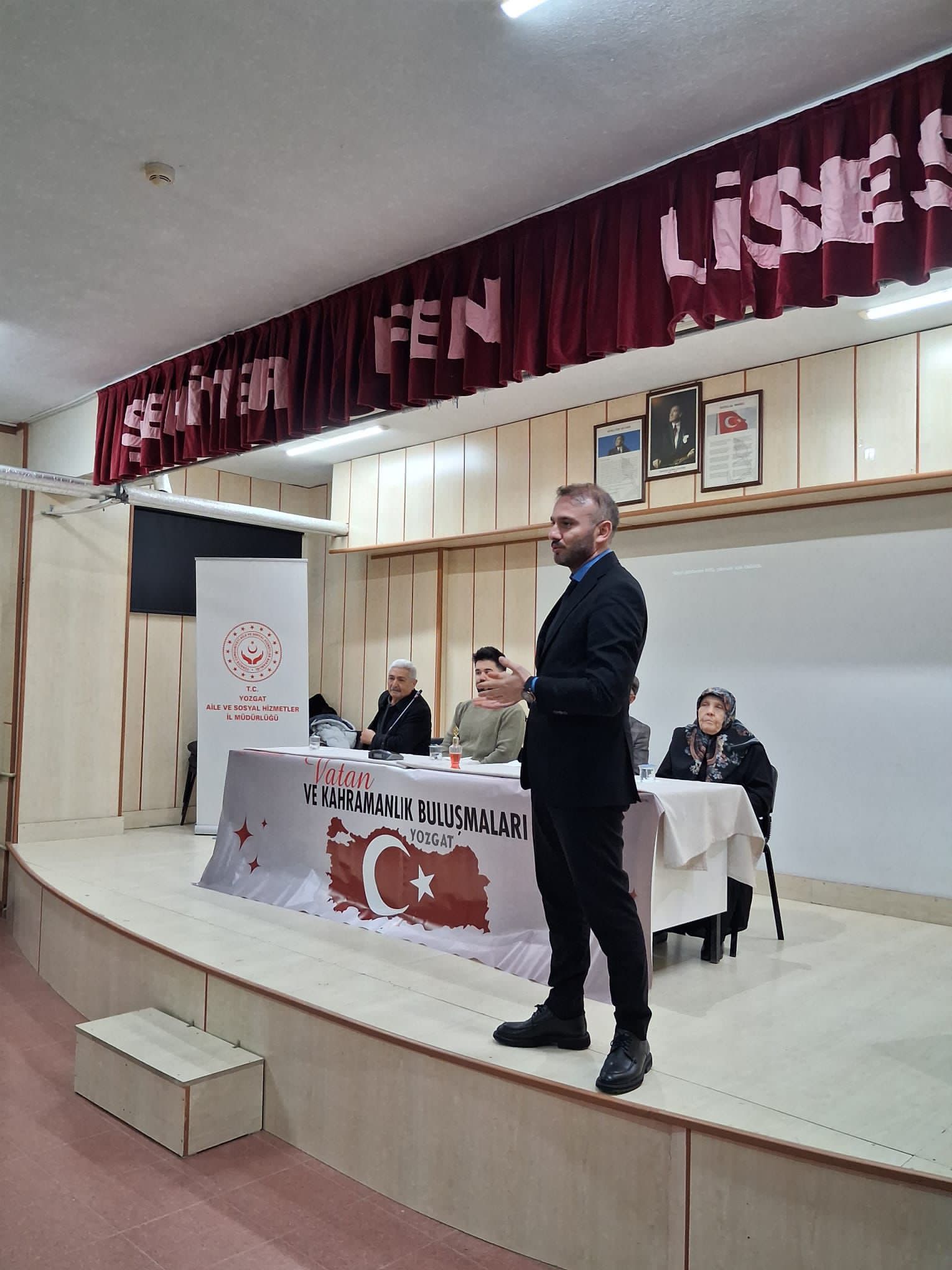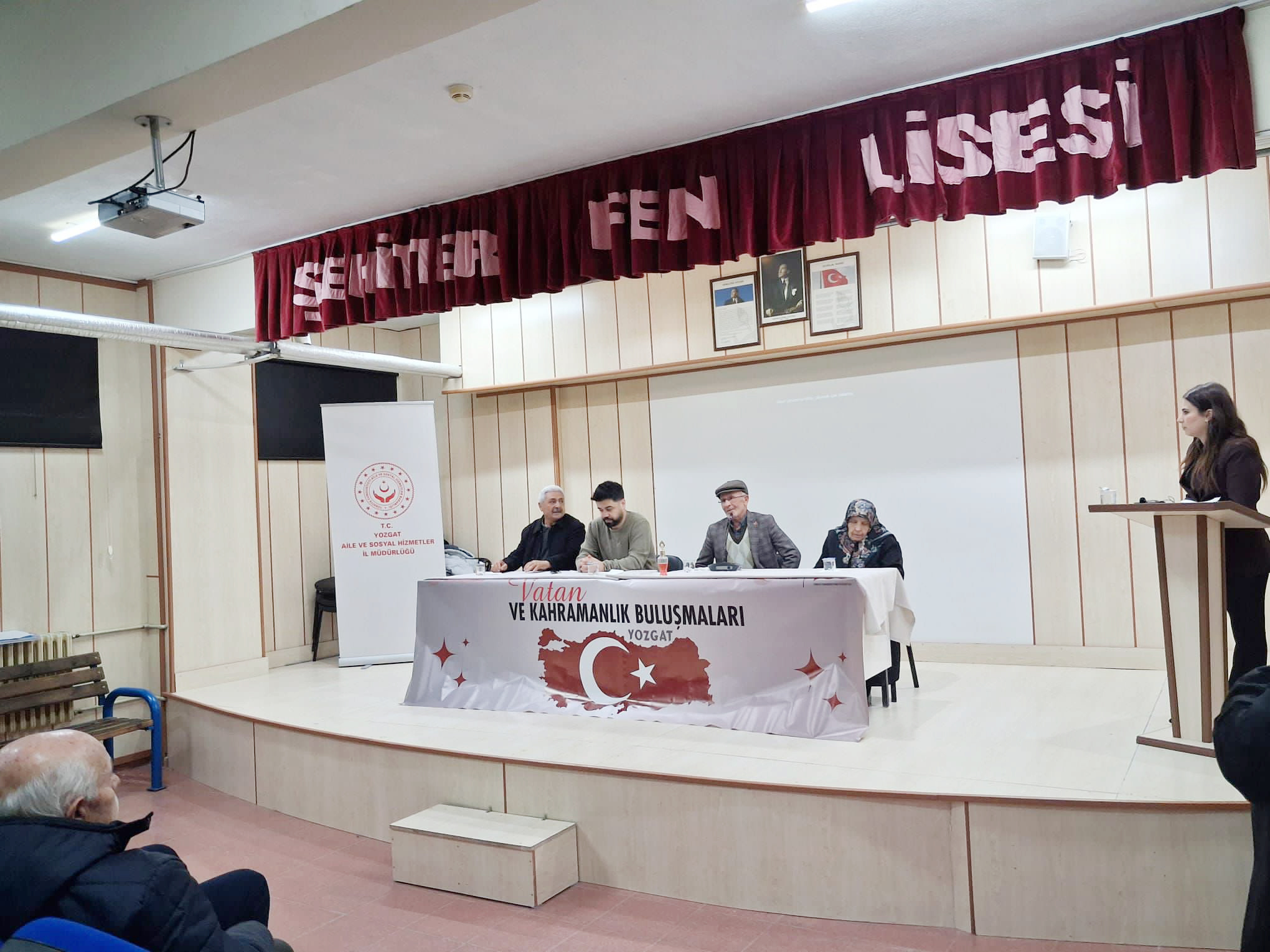 Aile ve Sosyal Hizmetler Bakanlığı tarafından ülke genelinde yürütülen “Vatan ve Kahramanlık Buluşmaları” programı, Yozgat Aile ve Sosyal Hizmetler İl Müdürlüğü Şehit Yakınları ve Gazi Hizmetleri Birimi koordinasyonunda Yozgat Şehitler Fen Lisesi’nde yoğun katılımla gerçekleştirildi.