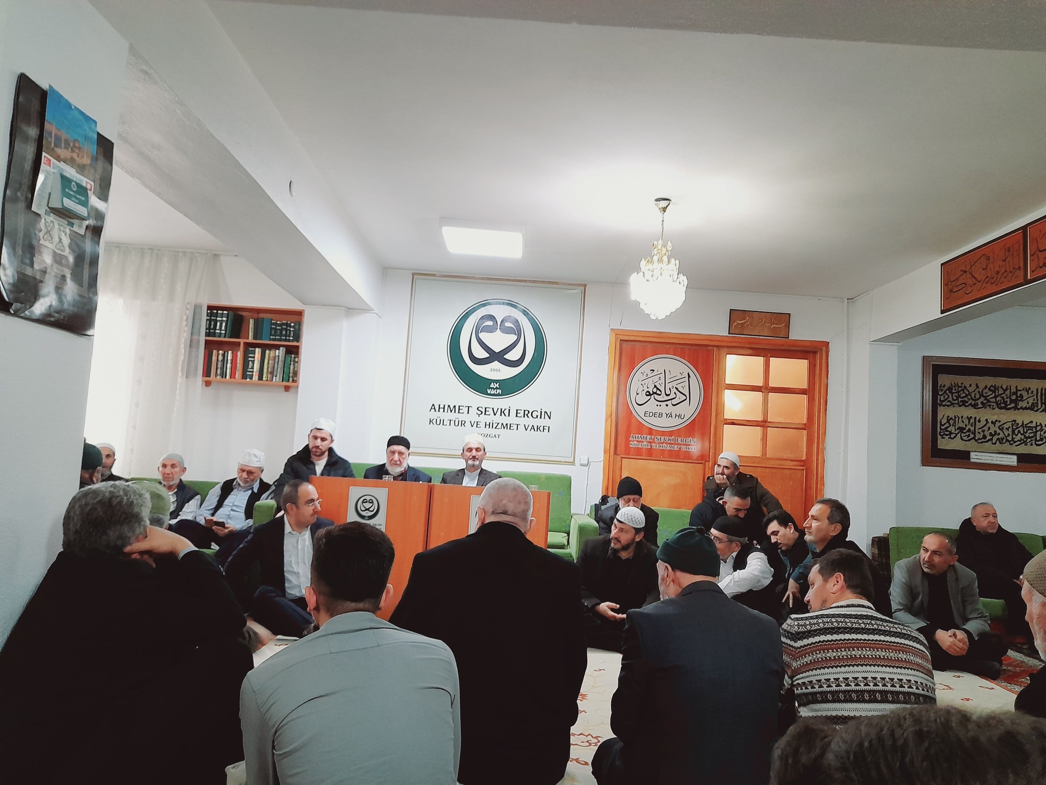 Gülden’in kıldırdığı Öğle Namazı sonrası Ahmet Şevki Ergin Kültür ve Hizmet Vakfı (AŞK) binasında sohbet programı gerçekleştirdi. AŞK Vakfı Başkanı Ali Şakir Ergin’in açış konuşmasını yaptığı programda Gülden, Şeyhzade Ahmet Şevki Ergin Hocaefendi (ks)’in gönül medeniyetimize bıraktığı emanetler hakkında konuştuktan sonra Şeyhzade’ye okunan hatimler ve çekilen zikirlerin duasını yaptı.