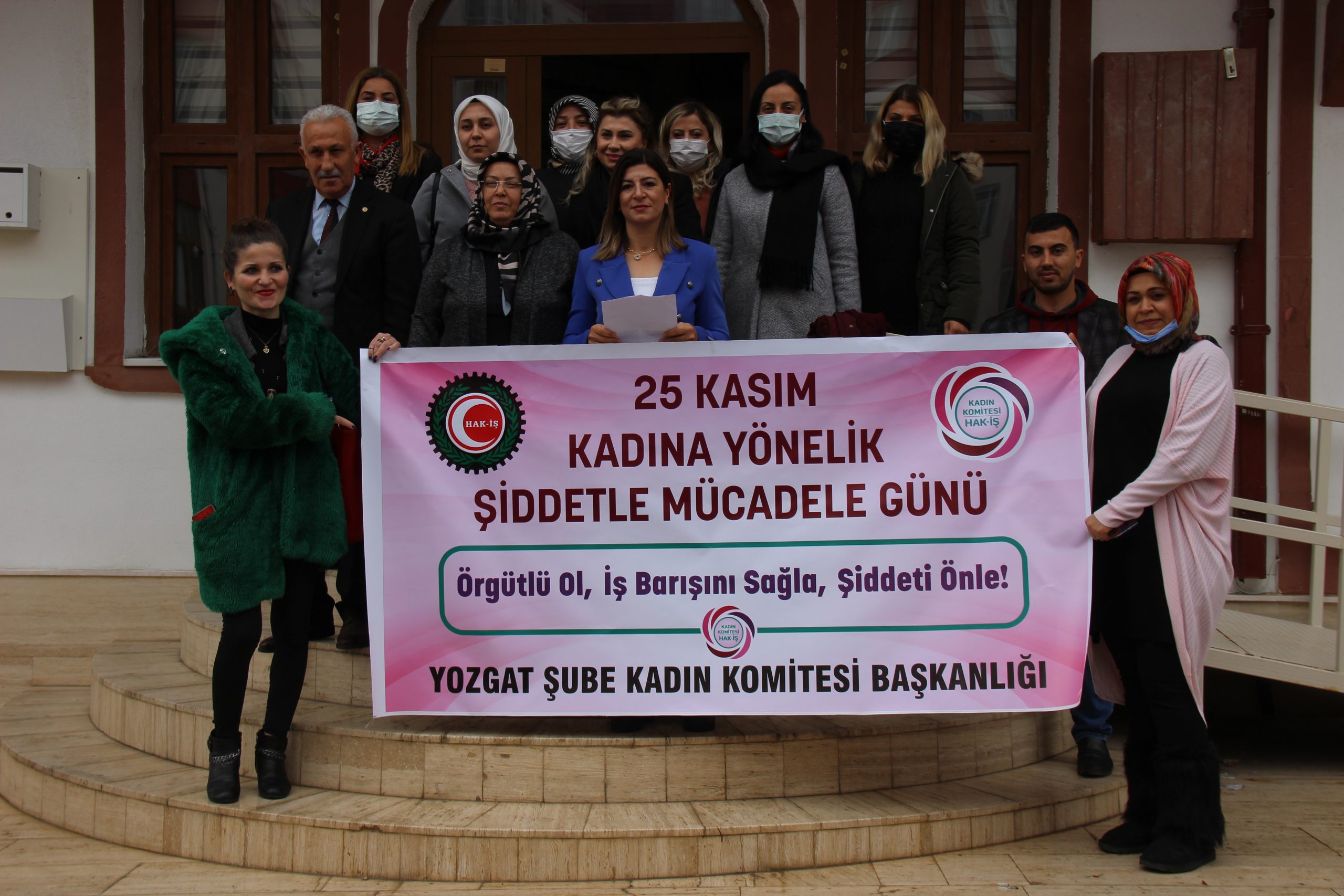 Hizmet-İş Sendikası Yozgat Şubesi Kadın Komitesi Başkanı Arzu Yönel, 25 Kasım Kadına Yönelik Şiddete Karşı Uluslararası Mücadele Günü dolayısıyla sendika binasında basın toplantısı düzenledi.