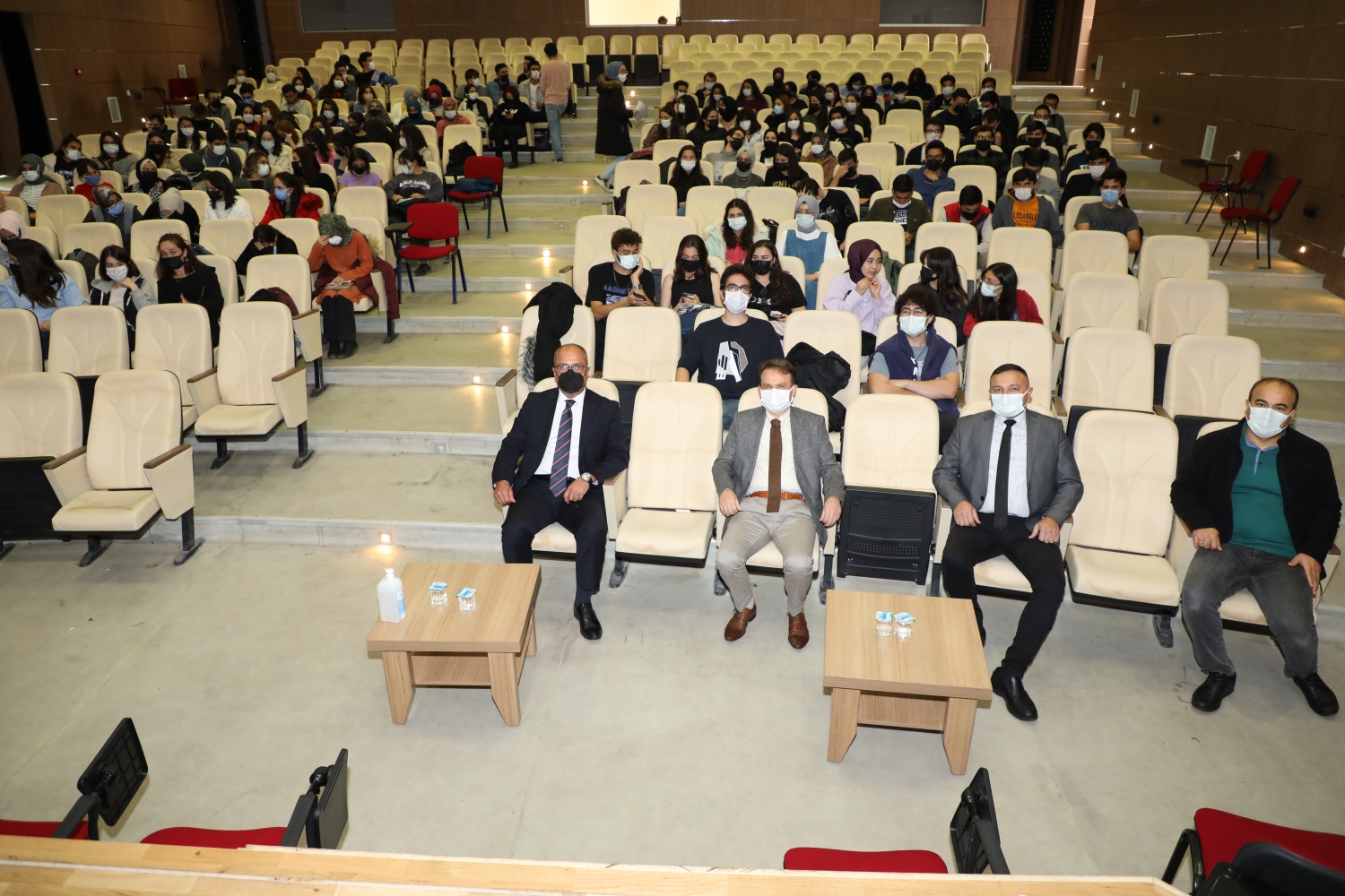Tıp Fakültesi Salonunda düzenlenen konferansa Üniversite Tıp Fakültesi Dekanı Prof. Dr. Ferit Çiçekçioğlu ve öğrenciler katıldı.