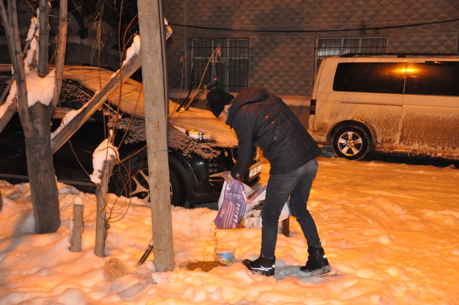 Hayvanları Koruma Derneği HİYADER Gönüllü Besleme Üyesi Fahri Genç, belediye ekipleriyle birlikte yiyecek bulmakta zorluk yaşayan yaban hayvanlarının aç kalmaması için cadde ve sokakları gezerek yiyecek bıraktıklarını söyledi.