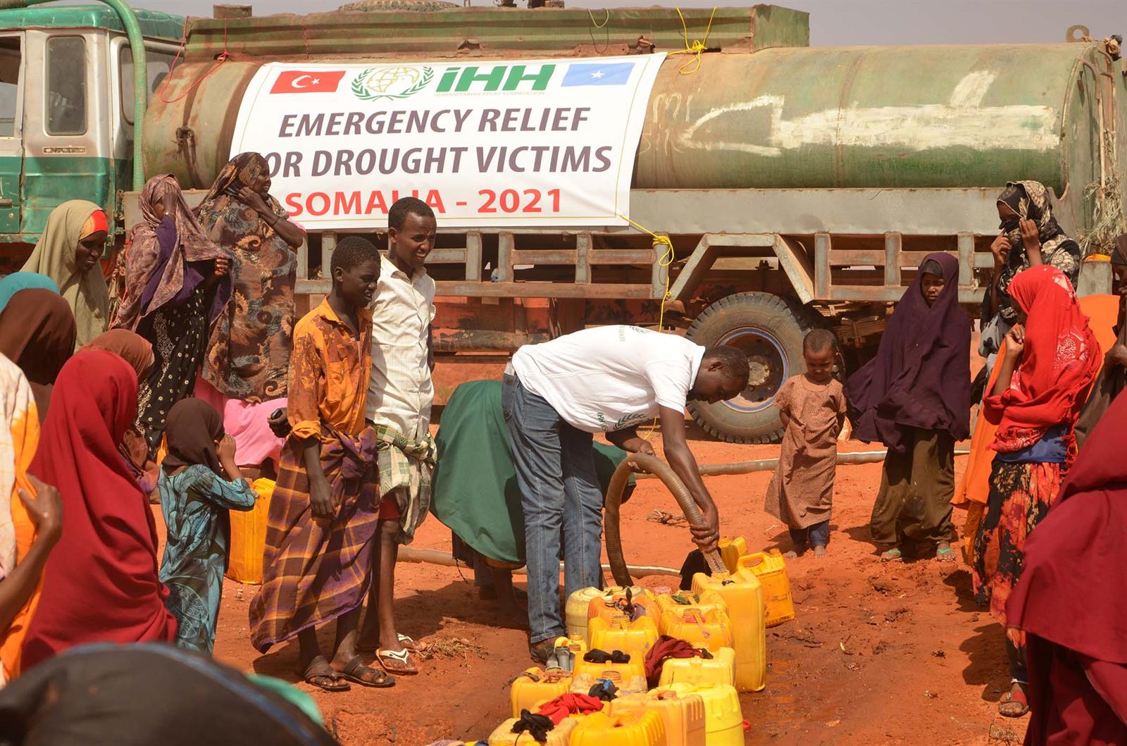İHH İnsani Yardım Vakfı, kuraklık sebebiyle tarım alanlarının da sulanamadığı ülkeye yardım ulaştırmak için harekete geçtiklerini dile getiren Gökhan, Kuraklıktan en fazla etkilenen bölgelerden biri olan Gedo bölgesinde su dağıtımlarına başlayan İHH ekipleri, Somali’nin farklı bölgelerinde su ve gıda dağıtımları yapmak için hazırlıklara başladı. Çok sayıda bölgede su kuyuları kururken, ülkede, sağlık hizmetlerine, gıdaya ve suya büyük ihtiyaç duyuluyor. Somali’de, 1990’dan bu yana sel ve kuraklık gibi 30’dan fazla afet yaşandı. 2011’deki kuraklık ve gıda krizi nedeniyle yaklaşık 260 bin kişi hayatını kaybetmişti” ifadelerini kullandı. Haber MERKEZİ