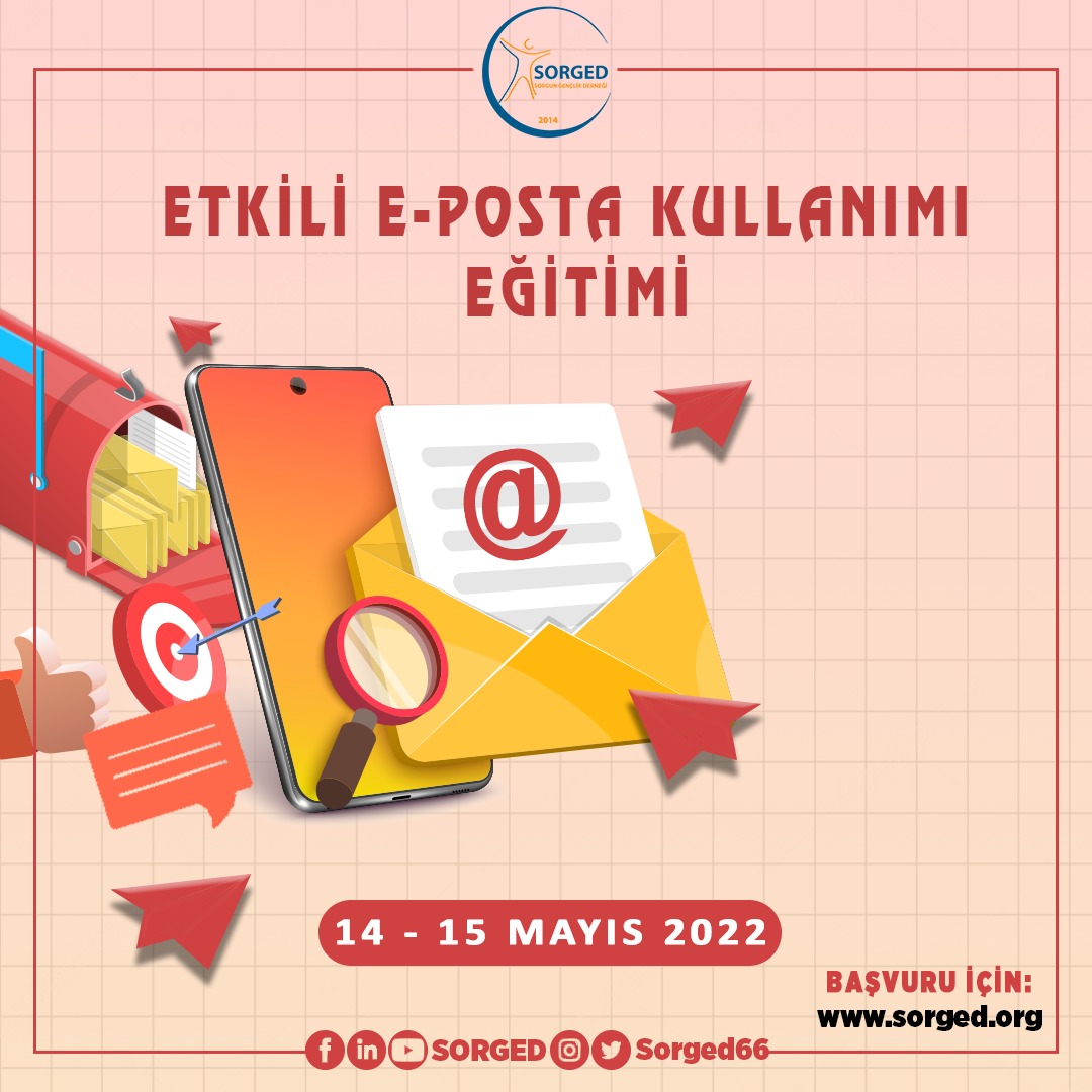 Sorgun Gençlik Derneği (SORGED) tarafından 14-15 Mayıs 2022 tarihinde “Etkili E-Posta Kullanımı Eğitimi” düzenlenecek.
