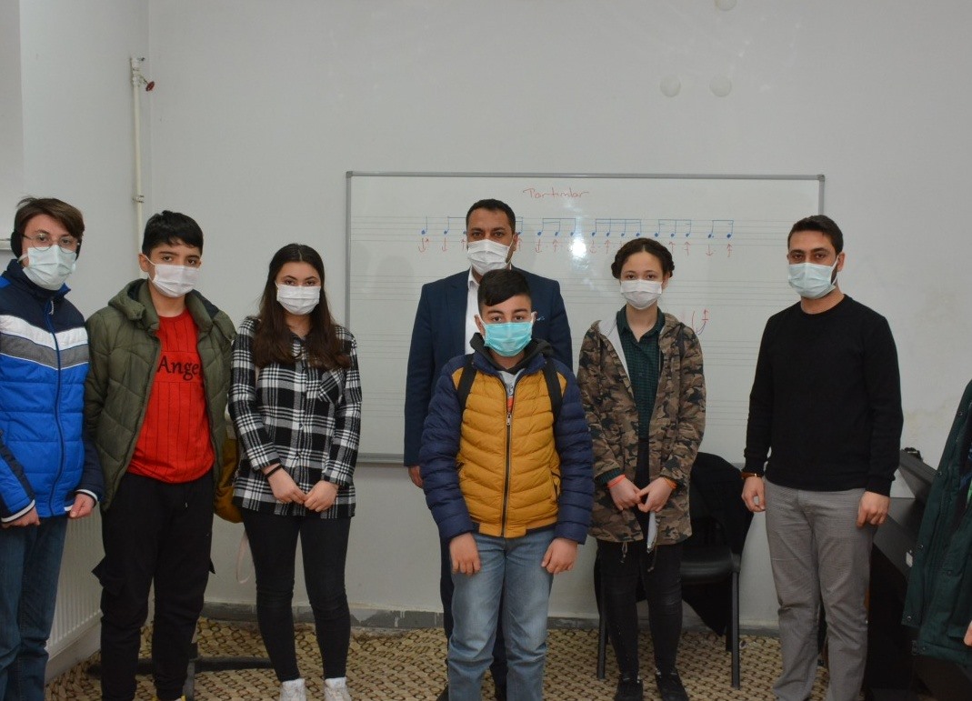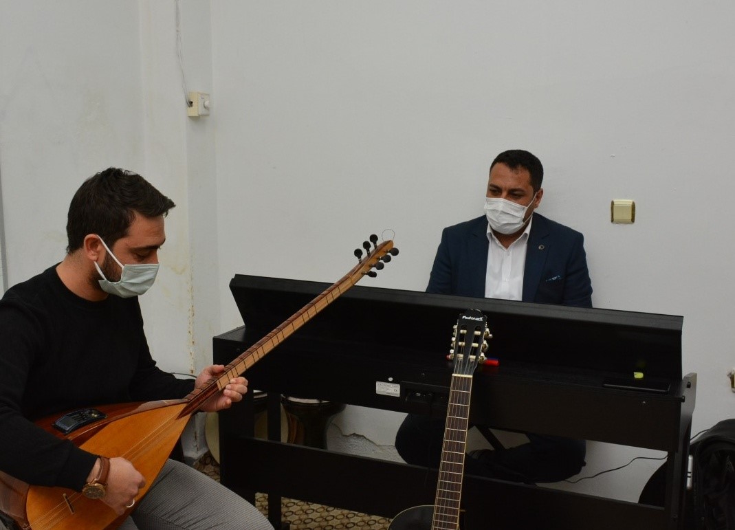 İlyas Arslan Kültür Merkezinde müzik eğitmeni eşliğinde verilen ücretsiz hazırlık kursunu ziyaret eden Belediye Başkanı M. Erkut Ekinci, Covid-19 tedbirlerine uygun olarak verilen kursta, konservatuvar ve güzel sanatlar fakültelerindeki müzik bölümü özel yetenek sınavlarına girmek isteyen öğrencilerin gelişimleri hakkında müzik eğitmeninden bilgi alarak öğrencilerin müzik derslerine eşlik etti.