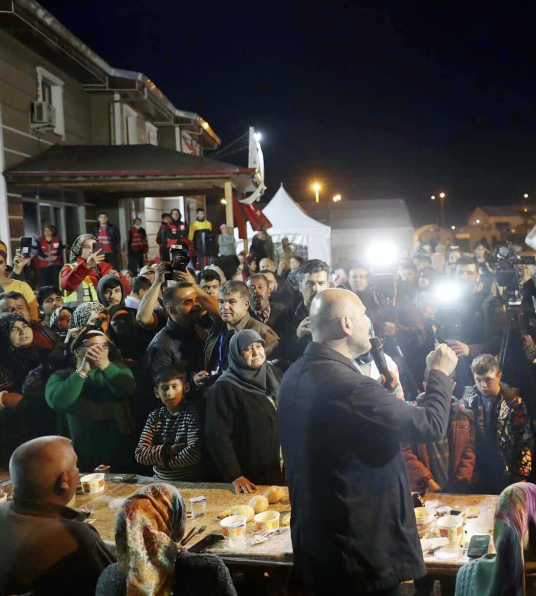 Hassa’da Koordinatör Vali olarak görev yapan Yozgat Valisi Ziya Polat tarafından karşılanan İçişleri Bakanı Süleyman Soylu, daha sonra depremzede vatandaşlarla iftar sofrasında buluştu. Bakan Soylu, yüzyılın felaketinin yarattığı büyük yıkımın yaralarını sarmak için devletin bütün kurumlarının mücadele verdiğini ifade etti.