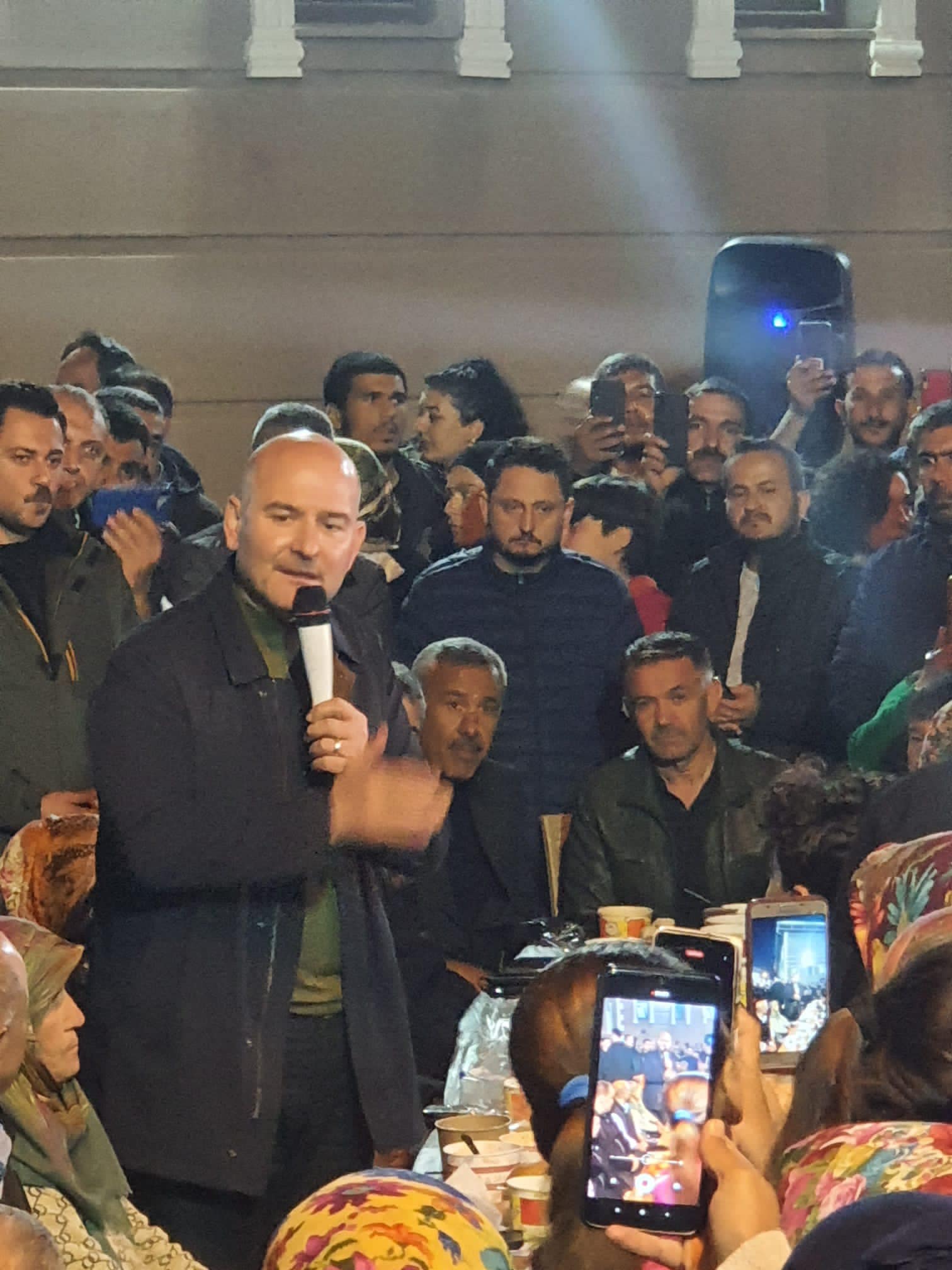 İçişleri Bakanı Süleyman Soylu, Hatay’ın Hassa Merkezdeki çadır Kent’te depremzedelerle beraber iftar programına katıldı.