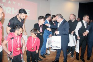 Daha sonra ödül törenine geçilerek; 2022-2023 Eğitim ve Öğretim Yılı Okul Sporları Kapsamında 14 branşta derece elde eden 129, erkek öğrenci, 75 kız öğrenci olmak üzere toplam 204 sporcu ve 25 antrenör-öğretmen, Federasyon faaliyetlerinde 6 branşta derece elde eden 16 erkek sporcu, 7 kız sporcu olmak üzere toplam 23 sporcu ve 9 antrenör Vali Polat ve katılımcılar tarafından ödüllendirildi. İhsan ÇELİKKAYA