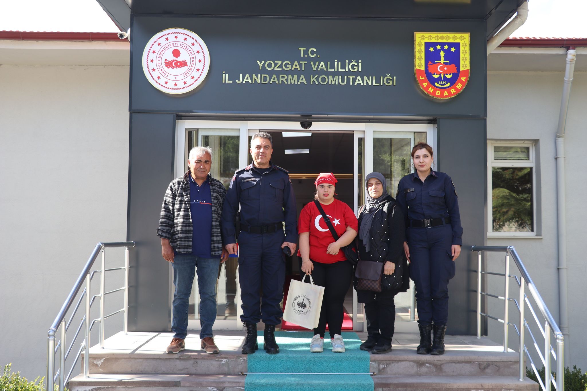 Yozgat’ın Şefaatli ilçesine bağlı Sarıkent Köyü’nde yaşayan Down sendromlu Suna Nur Yıldırım ve ailesi, İl Jandarma Komutanı Jandarma Kıdemli Albay Cezmi Yalınkılıç’a bir ziyarette bulundu.