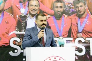 Biz Yozgat olarak, Anadolu’nun söz yerindeyiz hem meydanı hem yiğitlerin mekânı olarak, bu ve benzeri müsabakaların hem ilimizi anlatacak, hem ilimizde güreşi yaşatacak, sporu yaşatacak müsabakaların inşallah federasyonlarımızın ve federasyon başkanlarımızın desteği ile ileriye taşımak istiyoruz. Güreş er meydanı, yiğitler mekanı insanımızın yüreği, insanımızın sevdası, söz yerindeyse insanımızı meydanında, mekanında düğünde derneğinde yer alan ata sporumuzdur. Bu sporu geçmişten günümüze yaşatmak üzere bu meydanda, bu minderde terlediler. Bizlerde ata sporumuzu Yozgat’ta yaşatmak üzere sizlerin desteği ile gayret gösteriyoruz. Elbette hatamız, kusurumuz vardır, ama Yozgat’ımızın güzelliğini anlatmak sizlere düşer, ben bu vesileyle güreş federasyon başkanımıza, yöneticilerine, belediye başkanıma, emeği geçen herkese, ilimize gelen sporcularımıza şükranlarımızı sunuyorum’’ dedi.