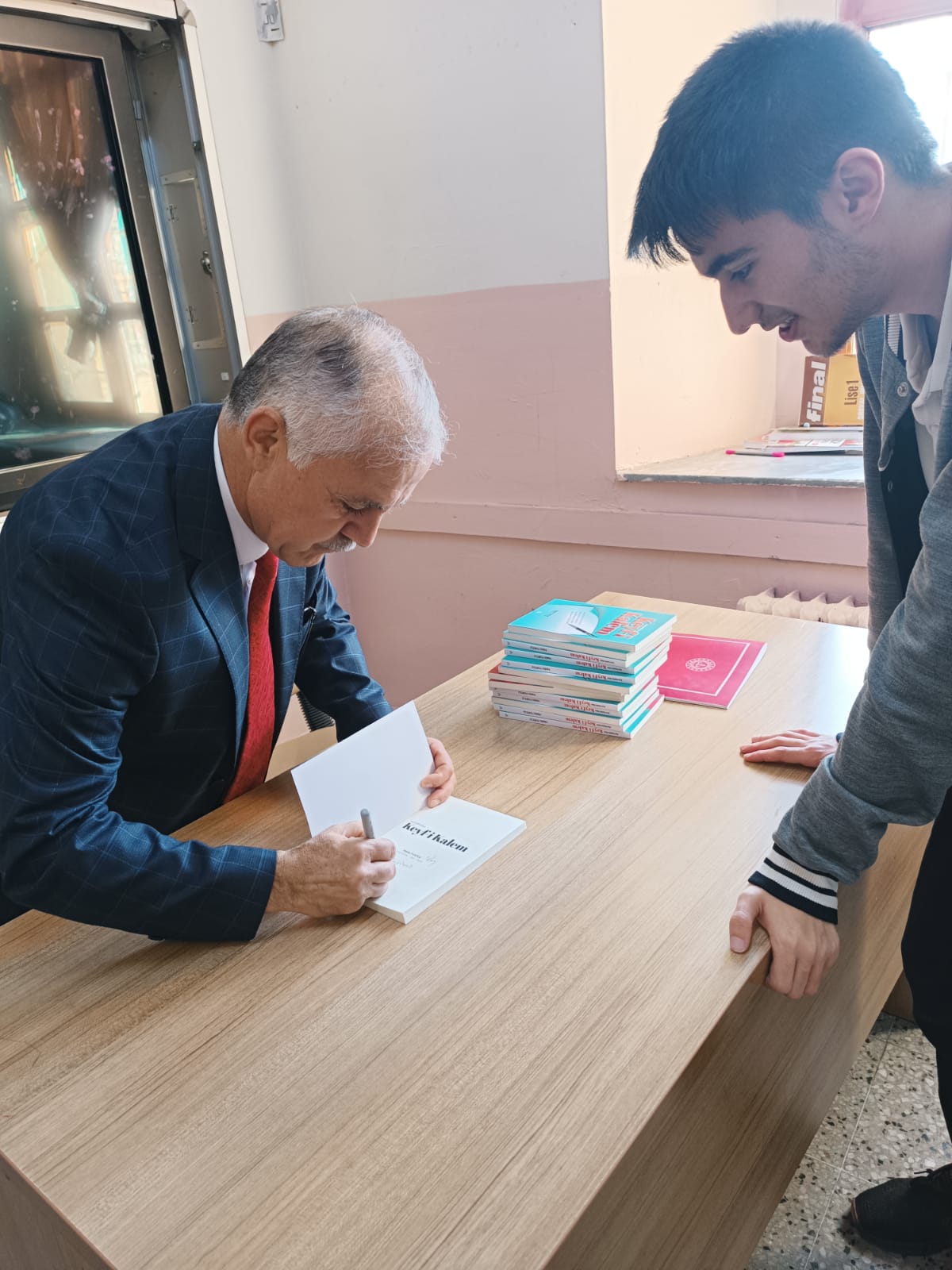 Etkinliğin bir diğer keyifli yanı ise, Ahmet  Eren Hazer isimli öğrencinin  “Mısraların Sesi” adlı şiir kitabını hediye etmesi oldu. Yurtlu, genç şairi tebrik ederek, başarılarının ve eserlerinin devamını diledi. Haber Merkezi