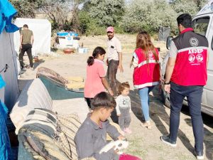 Dayılı Köyü’nde bulunan tarım işçilerini ziyaret eden psikososyal destek ekibi, işçilerin yaşam koşulları ve ihtiyaçları hakkında bilgi edinmek amacıyla detaylı görüşmeler ve incelemeler gerçekleştirdi.