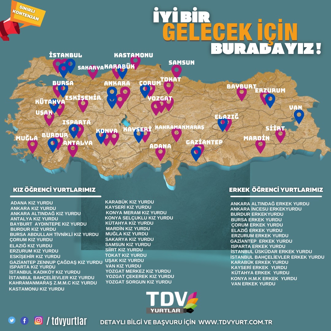 Yükseköğretim düzeyinde eğitim gören tüm öğrencilerin Türkiye Diyanet Vakfı yurtlarına başvuruda bulunabileceğini belirten Açık, yurtlarda kalmak isteyen öğrencilerin https://www.tdvyurt.com.tr sayfasında bulunan kayıt formunu doldurarak başvurularını gerçekleştirebileceklerini dile getirdi.