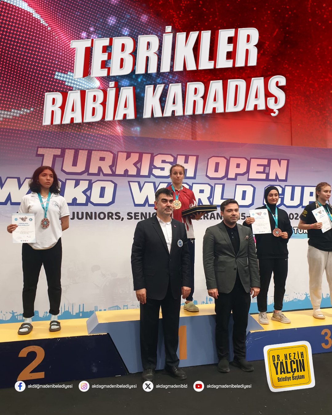Akdağmadeni Belediye Başkanı Nezih Yalçın, “Sporcumuz Rabia Karadaş, Milli Takım Antrenörlerimiz Tayfun Öztürk ve Taner Öztürk Hocamızı tebrik ediyor, Belediyemize ve ilçemize yaşattıkları bu gurur için teşekkür ediyoruz.” dedi./Yusuf BAĞCI