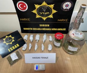 Narkotik suçlarla mücadelede ise TCK 191 Uyuşturucu Madde Kullanmak suçundan (38), TCK 188 Uyuşturucu Madde İmal ve Ticareti suçundan (9) şahsa işlem yapıldı. Operasyonlarda ele geçen uyuşturucu maddeler arasında 301.31 gr metamfetamin, 134.86 gr esrar, 15.46 gr sentetik kannabinoid (bonzai), 13 gr macun esrar, 70 adet sentetik ecza maddesi ve 17 adet kağıda emdirilmiş sentetik kannabinoid bulunuyor. Ayrıca, 3 adet uyuşturucu kullanma aparatı, 1 adet hassas terazi ve 7.870 TL uyuşturucu madde ticaretinden elde edildiği değerlendirilen para da ele geçirildi.