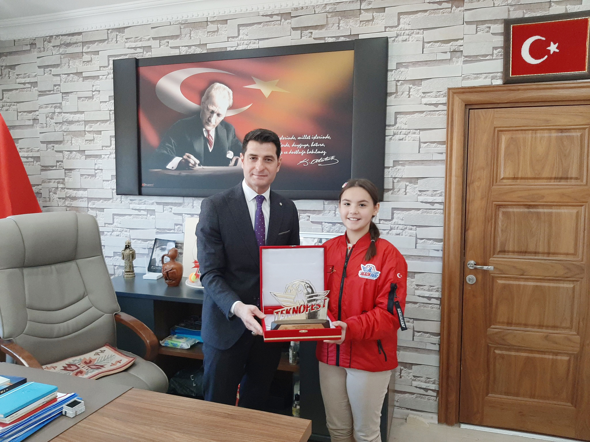 Geliştirmiş oldukları proje ile büyük bir başarı elde edip finalist olarak 27 Nisan – 1 Mayıs tarihleri arasında İstanbul Atatürk Havalimanı’nda gerçekleştirilen final yarışmalarında Yozgat’ı temsil etmeye hak kazanan Boğazlıyan Bilim Sanat Merkezi öğrencisini makamında ağırlayan Kaymakam Aydın, “Sevgili öğrencimiz Duru Dağıstanlı ve Kıymetli öğretmenimiz Samet Cengiz’i başarılarından dolayı tebrik ediyorum. Teknolojiye odaklanarak araştıran, üreten ve ilçemizin adını duyuran, başta öğrencimiz Duru Dağıstanlı olmak üzere öğretmenimiz Samet Cengiz, Bilim Sanat Merkezi Müdürümüz Şerafettin Uçar ve İlçe Milli Eğitim Müdürümüz Mustafa Şimşek’i canı gönülden tebrik edip, başarılarının devamını diliyorum’’ dedi. / Haber Merkezi
