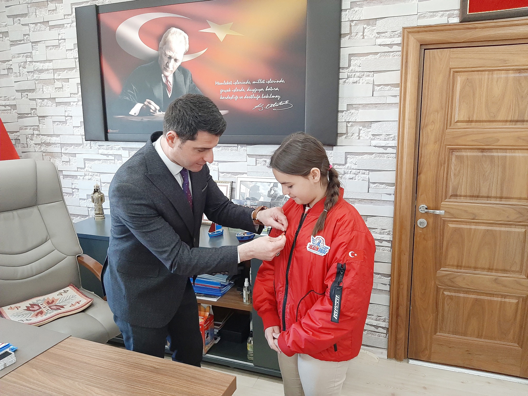 Boğazlıyan Kaymakamı Recep Aydın, TEKNOFEST’te Engelsiz Yaşam Teknolojileri Yarışmasında Türkiye birincisi olan Duru Dağıstanlı’yı makamında kabul ederek başarısından dolayı ödüllendirdi.