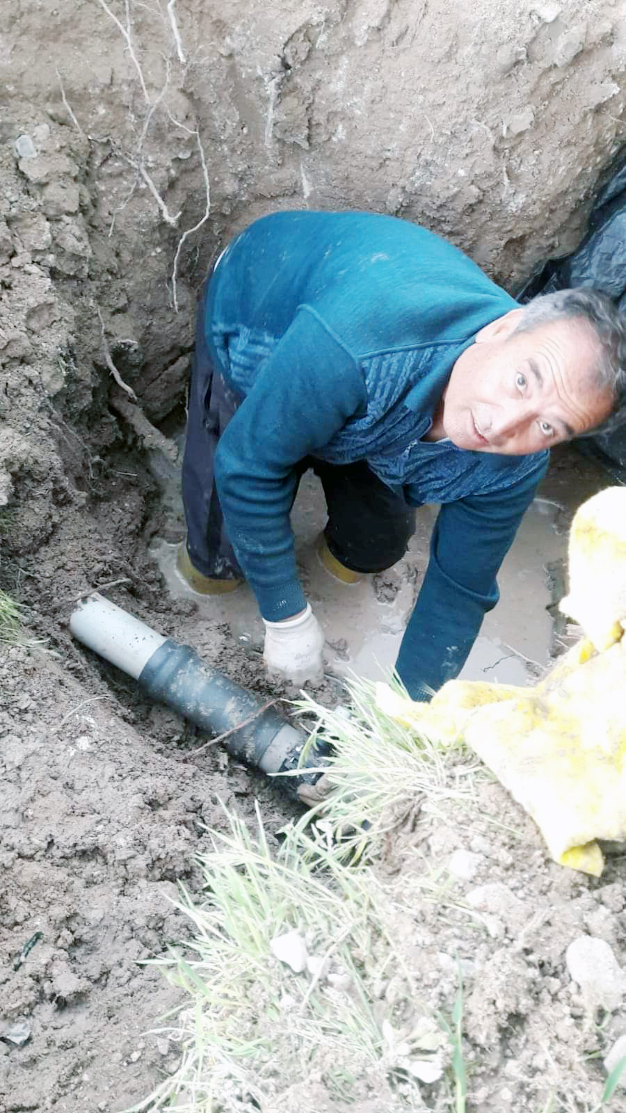 Muhtar Durmuş Yamur, 85 haneli köylerine içme suyu sağlayan 150 metrelik su hattında yaşanan tıkanıklık nedeniyle çalışma başlattı. İlk olarak iş makinesiyle kazı yapılarak plastik boru açığa çıkarıldı. Ancak, boruyu kazmayla kıran muhtar, içinde 7 metre uzunluğunda bir ağaç köküyle karşılaştı.