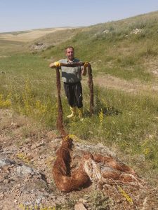Muhtar Yamur, ağaç kökünü çekildikçe uzadığını belirterek, köylülerin “Boa yılanı geliyor” diye şaşkınlıklarını ifade ettiklerini söyledi.