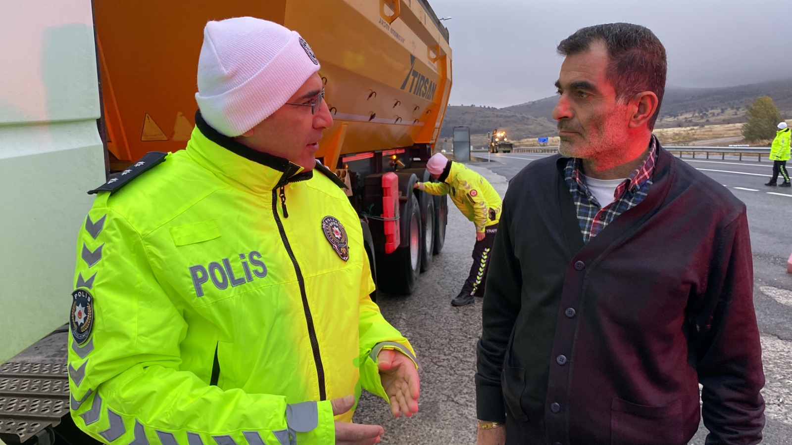 Denetimler sırasında ticari araç sürücüsü Hüseyin Yılmaz, trafik ekiplerinin sıkı denetimlerinin memnuniyet verici olduğunu ifade ederek, “Emniyet ekiplerimizin bu işi sıkı tutmaları bizim açımızdan daha iyi. Yolcu ve bizim can güvenliğimiz için yollardaki kazalar hep tedbirsizlikten kaynaklanıyor. Biz tedbirimizi aldık. Kış lastiklerimiz takılı. Hayati önem taşıdığı için mecbur herkesin takması lazım.” şeklinde konuştu.