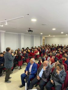 Lisenin Konferans Salonunda 11’inci ve 12’inci sınıf öğrencilerinin katılımıyla gerçekleştirilen etkinliğe İlçe Milli Eğitim Müdürü Musa Öcal, Şube Müdürü Yasin Yılmaz, Okulun Müdür Vekili Yasin Erbek ve öğretmenlerden bazıları da iştirak ettiler.