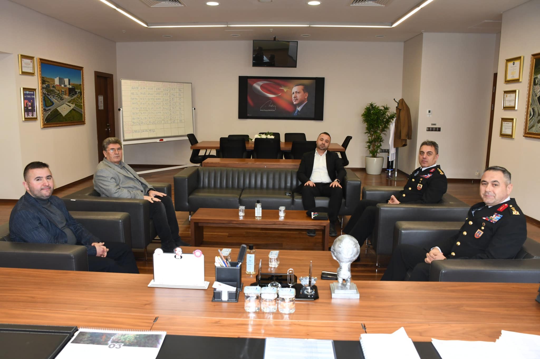Tümgeneral Bulut, Yozgat Valisi Mehmet Ali Özkan, İl Emniyet Müdürü Recep Tecimer ve Bozok Üniversitesi Rektörü Prof. Dr. Evren Yaşar ile bir araya geldikten sonra Yozgat Şehir Hastanesi’ni ziyaret etti. Yozgat Şehir Hastanesi Başhekimi Uz. Dr. Mustafa Kozan tarafından karşılanan Tümgeneral Bulut ve Albay Yalınkılıç, Başhekim Kozan ile bir süre sohbet ederek, sağlık hizmetlerinin işleyişi hakkında bilgi aldı. Ziyaretin ardından duyduğu memnuniyeti dile getiren Başhekim Kozan, Tümgeneral Bulut ve Albay Yalınkılıç’a nazik ziyaretleri için teşekkür etti. /Haber Merkezi