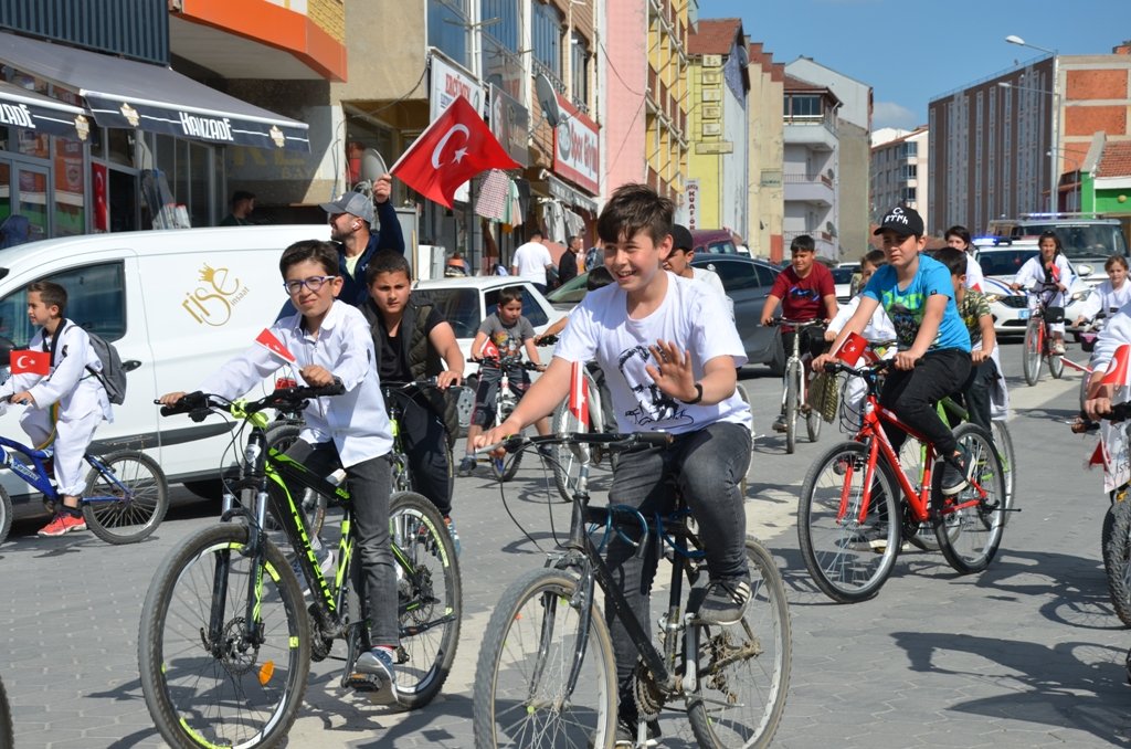 14-20 yaş arasındaki gençler bisikletleriyle ve Türk bayraklarını açarak korteje katıldı. Öğrencilerin yanı sıra, daire müdürleri ile kortej hükümet konağı önünden başlayarak Gençlik ve Spor İlçe Müdürlüğü kapalı spor salonunda sona erdi. İlçe Kaymakamı Samet Serin, yaptığı konuşmada etkinliğe katılan öğrenci ve protokole teşekkür ederek, 19 Mayıs Atatürk’ü Anma, Gençlik ve Spor Bayramını kutladı.