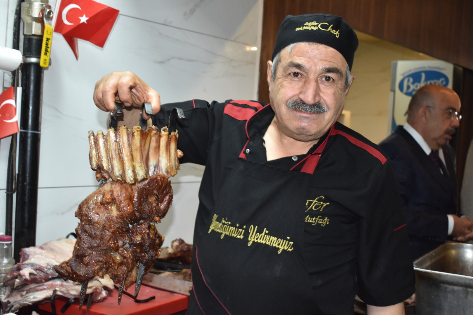 Zafer Türk Mutfağı’nın Yozgat gastronomisine önemli katkıları olduğunu kaydeden Yozgat Kahveciler ve Lokantacılar Odası Başkanı Eyüp Coşgun, “21- 27 Mayıs Türk Mutfağı Haftası kapsamında Zafer Türk Mutfağı’ndayız. Zafer Türk Mutfağı Yozgat’ın gastronomisine önemli katkıları olan bir mekan. Yozgat’ın aynası olan, Yozgat’ın kendi lezzetlerini ön plana çıkaran Zafer Türk Mutfağı’nı ziyaret etmek istedik. Şehrimize önemli katkıları bulunan bir iş adamımız. Şehrimizin tanıtımına da önemli katkıları olan bir mekan. İncir uyutmasını Türkiye’de hiç kimse bilmez iken Zafer Bey’in sayesinde lokantalarımızın hepsine girmiştir. Desti, tandır kebaplarımızın tanıtımını yapıyor. Kendilerine bir kez daha teşekkür ediyorum” şeklinde konuştu.