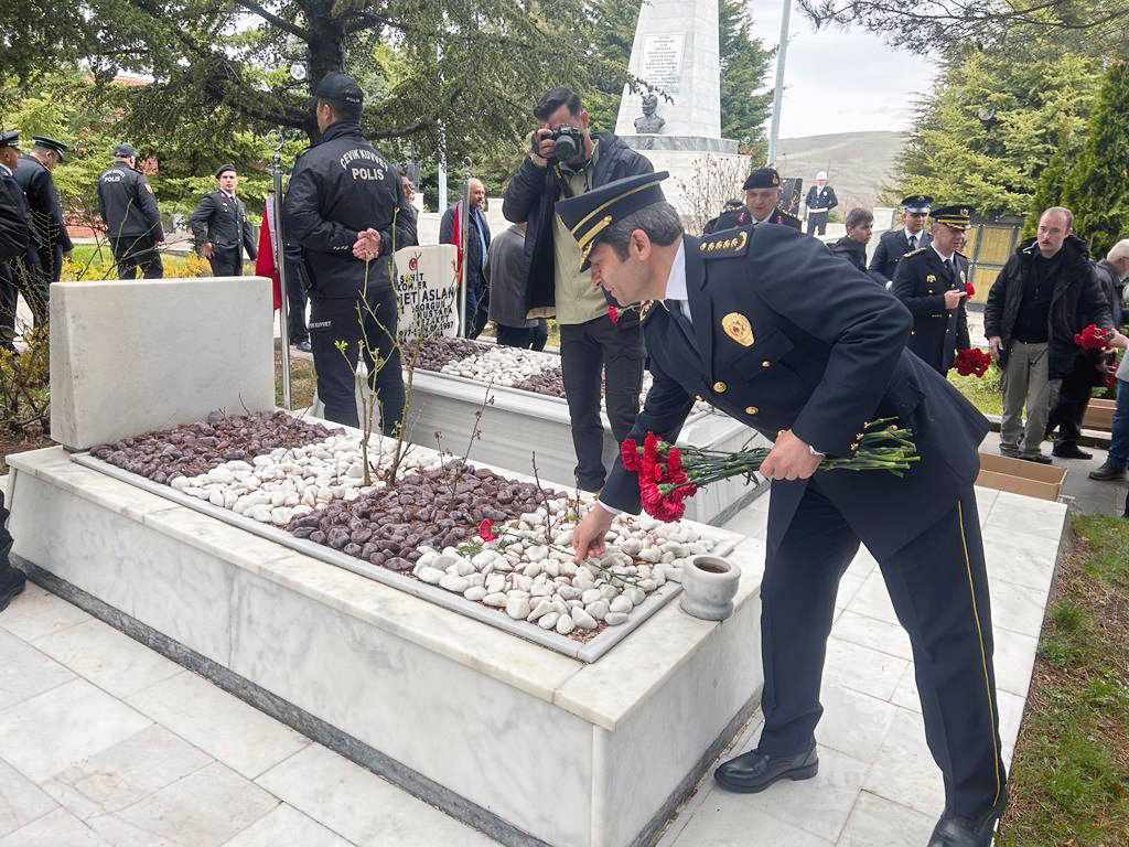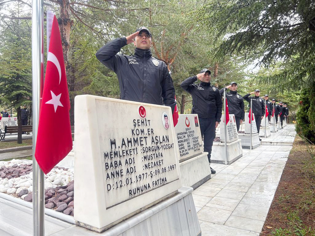 Yozgat Şehitliği’nde gerçekleştirilen programda Yozgat İl Emniyet Müdürlüğü Çelengini İl Emniyet Müdürü Kenan Şaban Süzgün, Yozgat Polis Meslek Eğitim Merkezi (POMEM) Çelengini ise POMEM Müdürü Zafer Kişi Atatürk anıtına sundu. Kur’an-ı Kerim tilavetinin ardından yapılan protokol konuşmaları sonrasında şehit kabirleri ziyaret edilerek karanfil bırakıldı. Törene jandarma teşkilatı mensupları, POMEM öğrencileri, kurum ve kuruluş müdürleri ile şehit ve gazi yakınları katıldı.