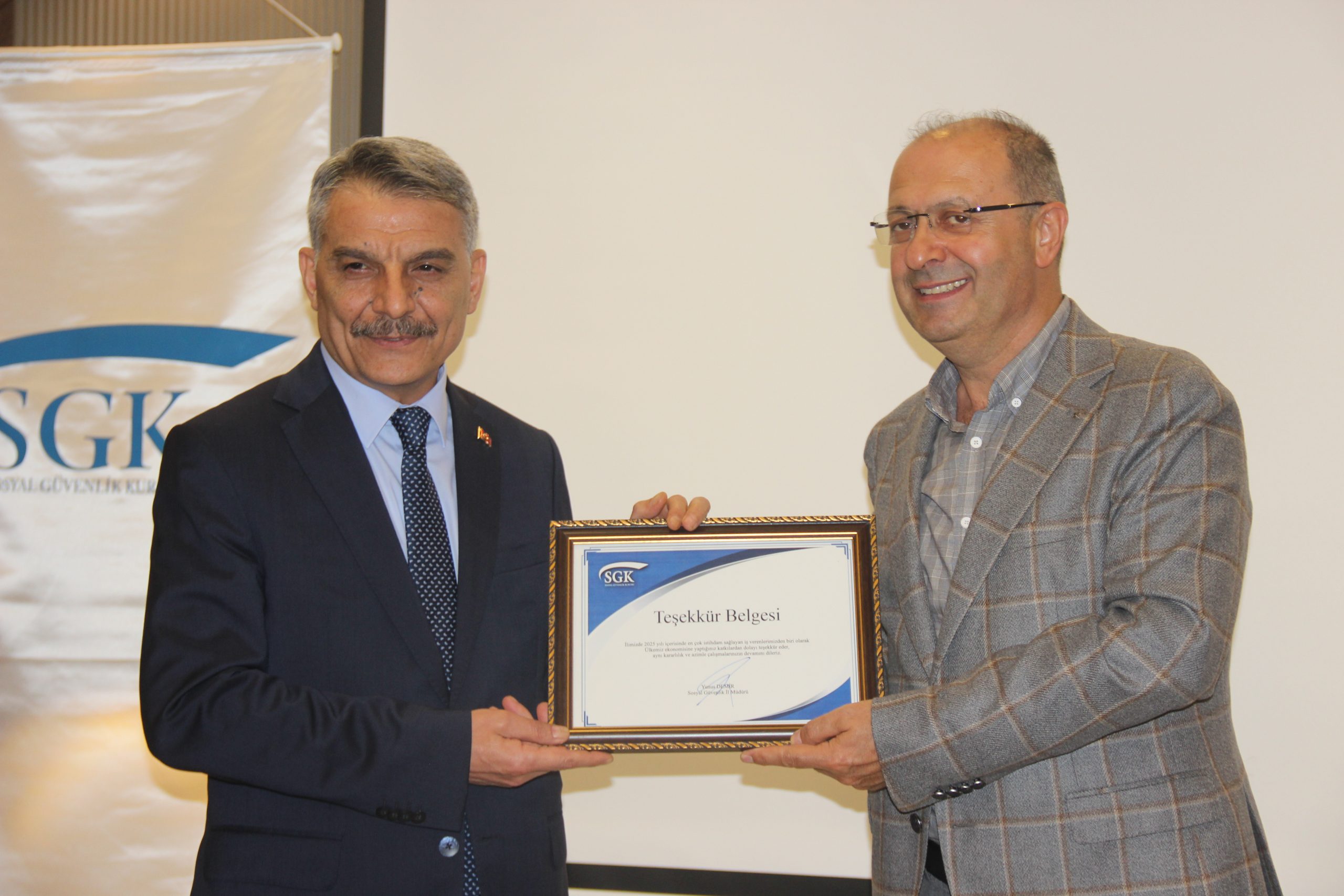 Programda konuşan Yozgat Valisi Mehmet Ali Özkan, SGK Yozgat İl Müdürlüğü’nün başarısından dolayı İl Müdürü Yunus Demir ve tüm personeli tebrik ederek şunları söyledi:
