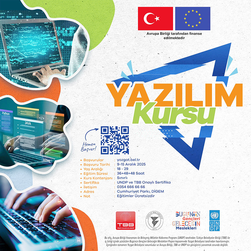 Yozgat Belediyesi, dijital dünyanın yükselen mesleklerine adım atmak isteyen gençler için önemli bir fırsatı hayata geçiriyor. Avrupa Birliği finansmanı ile Yozgat Belediyesi Dijital Gençlik Merkezi (DİGEM) bünyesinde düzenlenecek Ücretsiz Yazılım Kursu için başvurular resmen başladı.