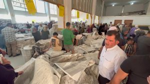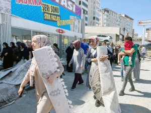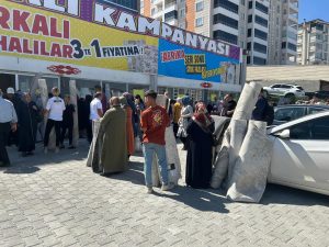 Yozgat’ta maliyetine halı satışı yapılacağını duyan vatandaşlar halı satış noktasında uzun kuyruklar oluşturdu. Halı alabilmek için adeta birbirleri ile yarışan vatandaşlar bazanda izdihama neden oldu. Firma çalışanı Hakan Güldaş, Ankara’daki depolarında yağış nedeniyle halıların zarar gördüğünü söyledi. Halı fiyatlarını zararına uygun fiyata verdiklerini vurgulayan Güldaş, ‘’Halıları piyasaya göre 3’te 1 fiyatına satıyoruz. İlgi ve alaka çok yüksek seviyede satışlarımız sürüyor. Herkesi bekliyoruz” dedi.