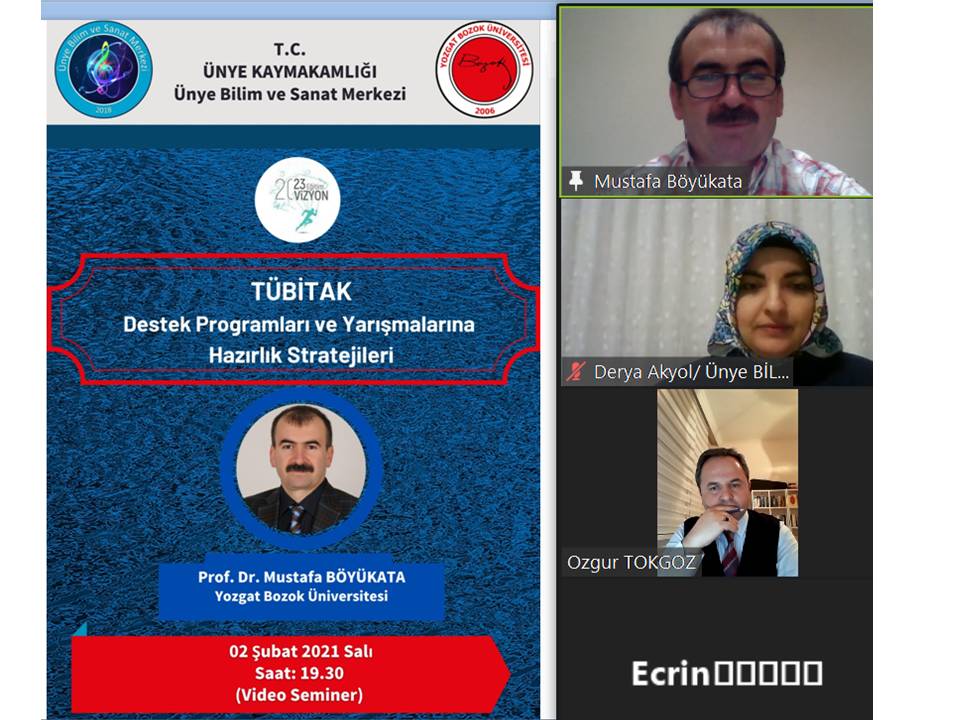 Yozgat Bozok Üniversitesi Öğretim Üyesi Prof. Dr. Mustafa Böyükata, Ordu – Ünye Bilim ve Sanat Merkezi’nden gelen davet üzerine, öğretmenlere, öğrencilere ve velilere yönelik olarak 2 Şubat Salı akşamı, “TÜBİTAK Destek Programları ve Yarışmalarına Hazırlık Stratejileri” konulu eğitim semineri verdi.