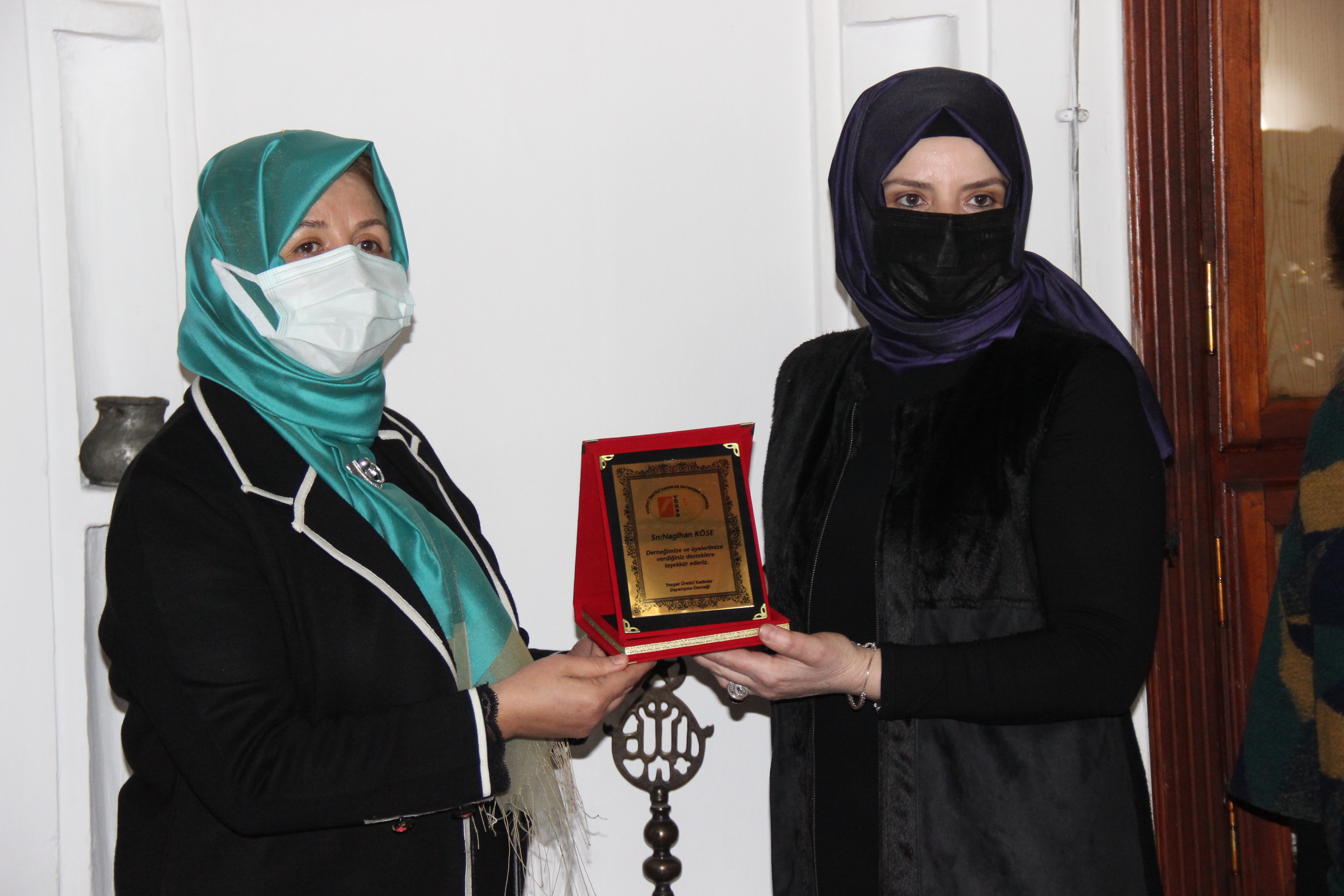 Program sonunda Yozgat Üretici Kadınlar Dayanışma Derneği Başkanı Hacer Güçlü tarafından Yozgat Belediye Başkanı Celal Köse’nin Eşi Nagihan Köse’ye derneğe desteklerinden dolayı teşekkür plaketi takdim etti. (Alpaslan Demir)