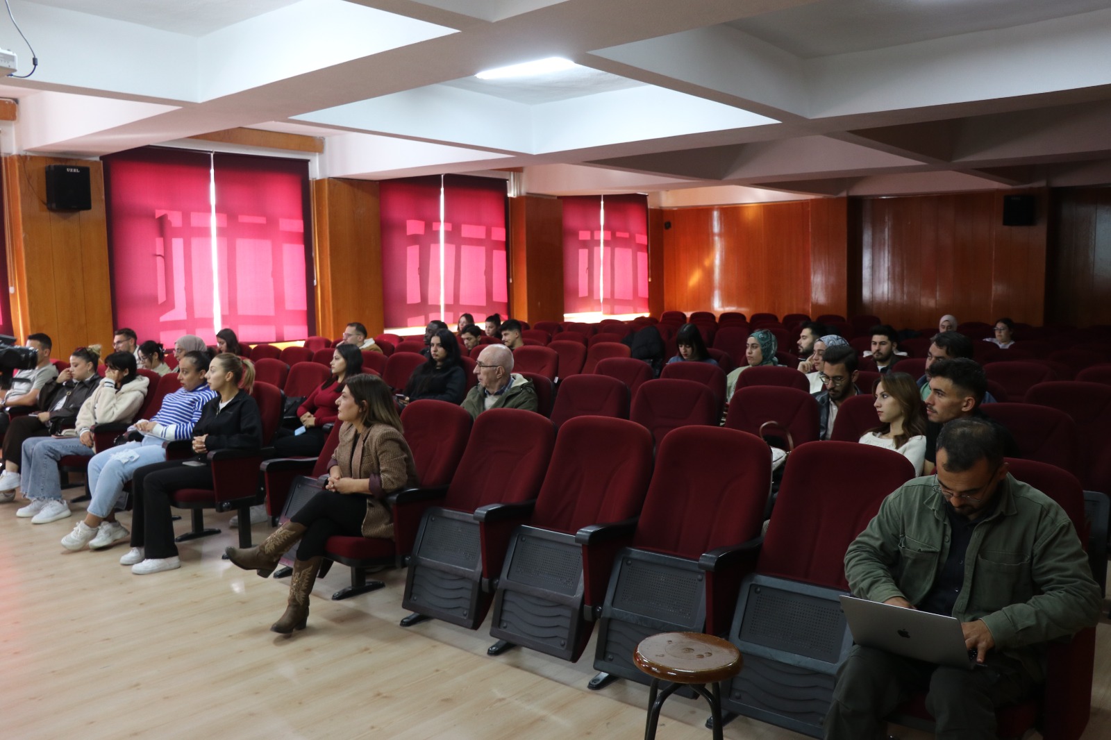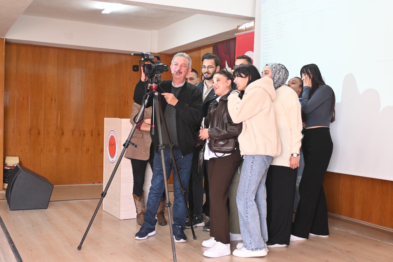 YOBÜ İletişim Fakültesi Konferans Salonu’nda gerçekleşen etkinliğe öğrenciler yoğun ilgi gösterdi. Ertuğrul, haberciliğin görsel boyutunun önemine dikkat çekerek, özellikle kameramanların sahadaki kritik rolünü vurguladı.