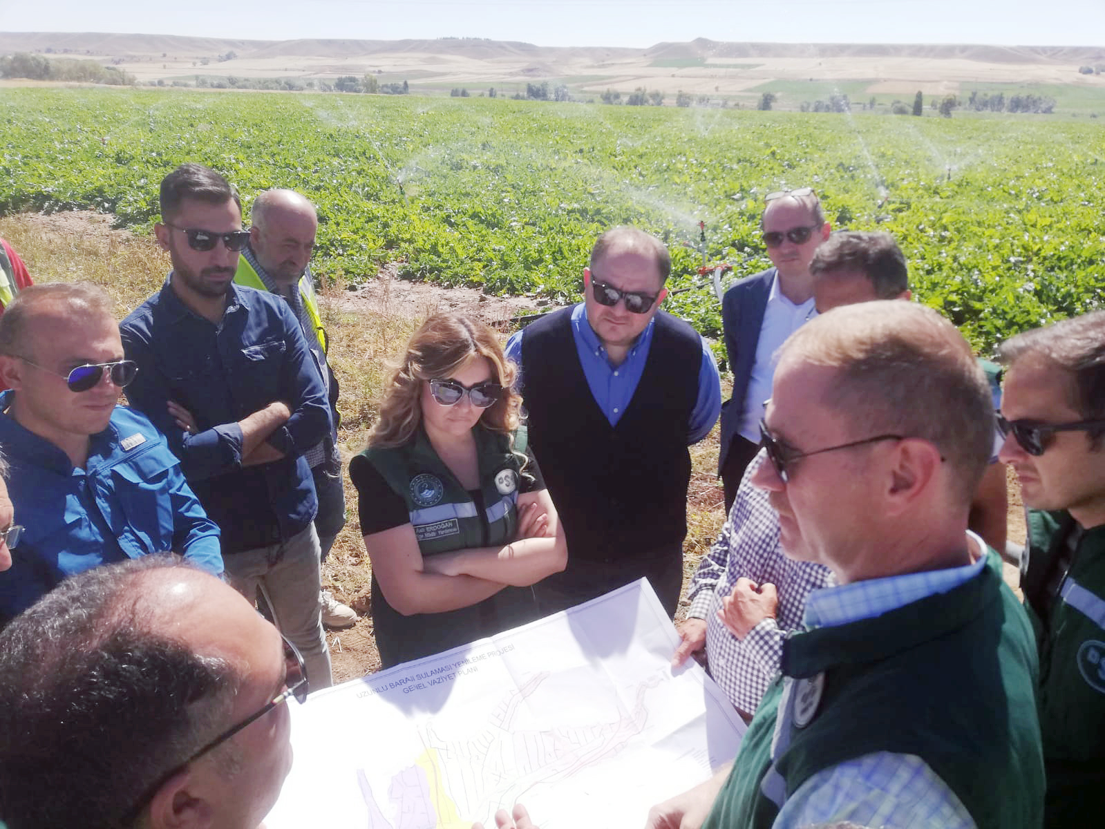 Bölge Müdürü Okan Bal, Bölge Müdür Yardımcıları ve ilgili şube müdürleri ile birlikte yerinde incelemelerde bulunarak projenin ilerleyişini değerlendirdi. İmalatları tamamlanan kısımlara ait sulama şebekesi üzerinden çiftçilere yağmurlama sulama yöntemiyle su sağlandı.