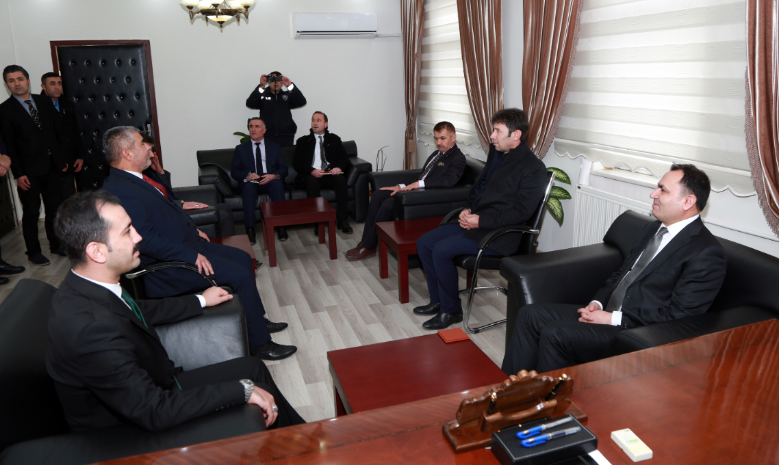 İlk önce ilçe kaymakamlığını ziyaret eden Vali Çakır, İlçe Kaymakamı Ömer Tuğrul Kundakçı’dan ilçedeki çalışmalar hakkında bilgi aldı.