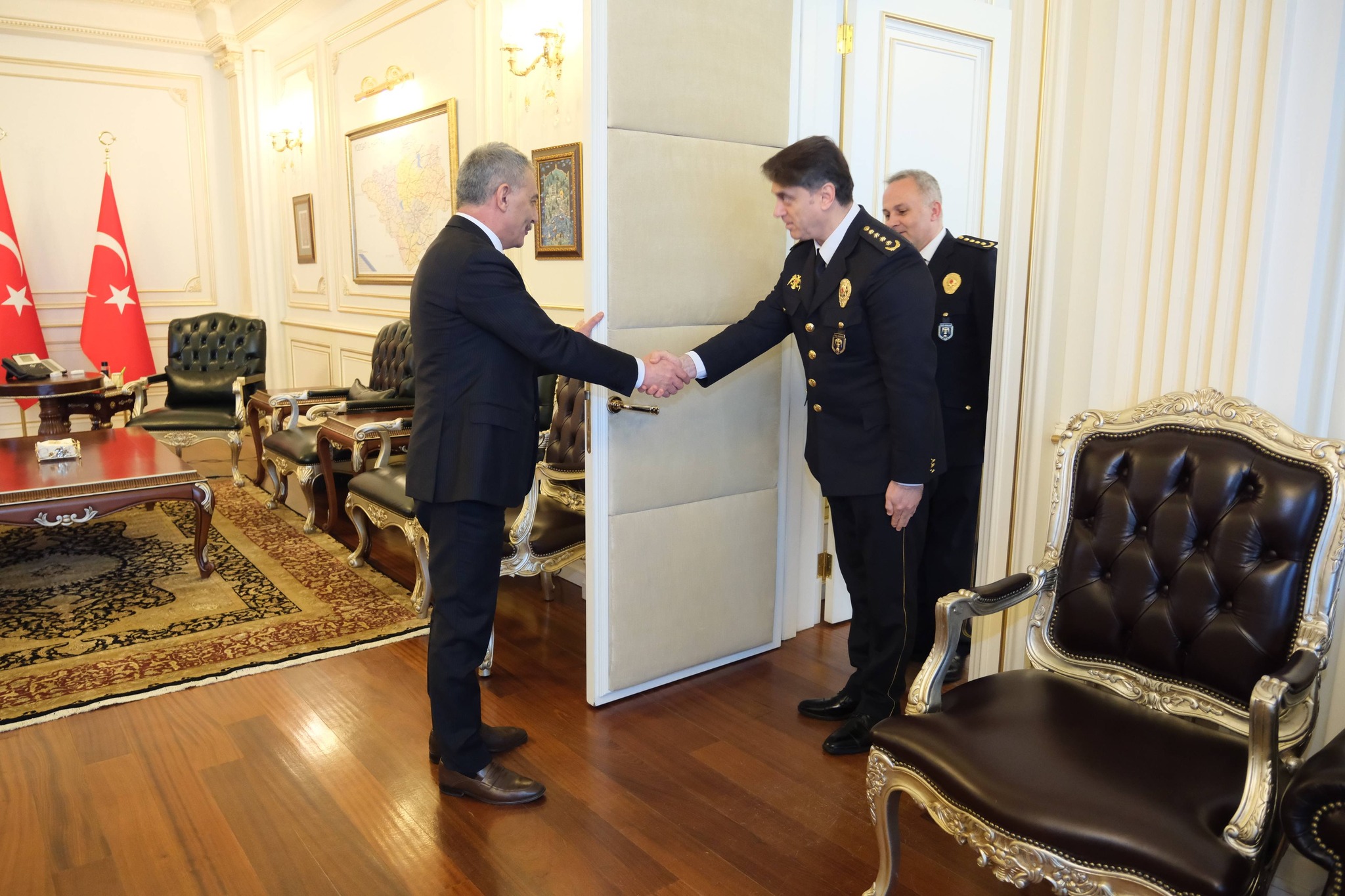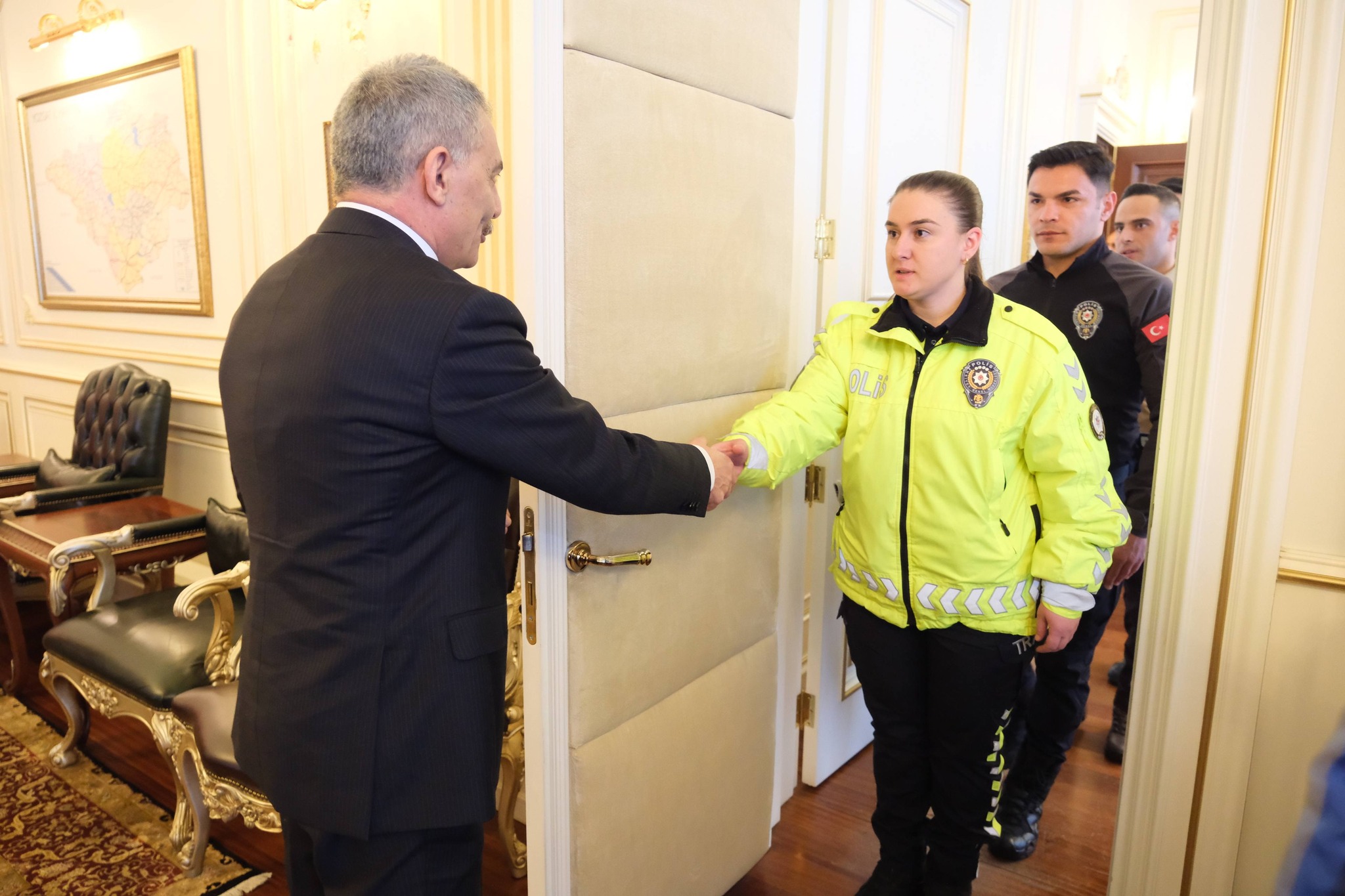 Türk Polis Teşkilatı’nın 181. kuruluş yıl dönümü dolayısıyla Yozgat Valisi Mehmet Ali Özkan, İl Emniyet Müdürü Necmettin Koç, Yozgat Polis Meslek Eğitim Merkezi (POMEM) Müdürü Mustafa Tokay ve emniyet personelini makamında kabul etti.
