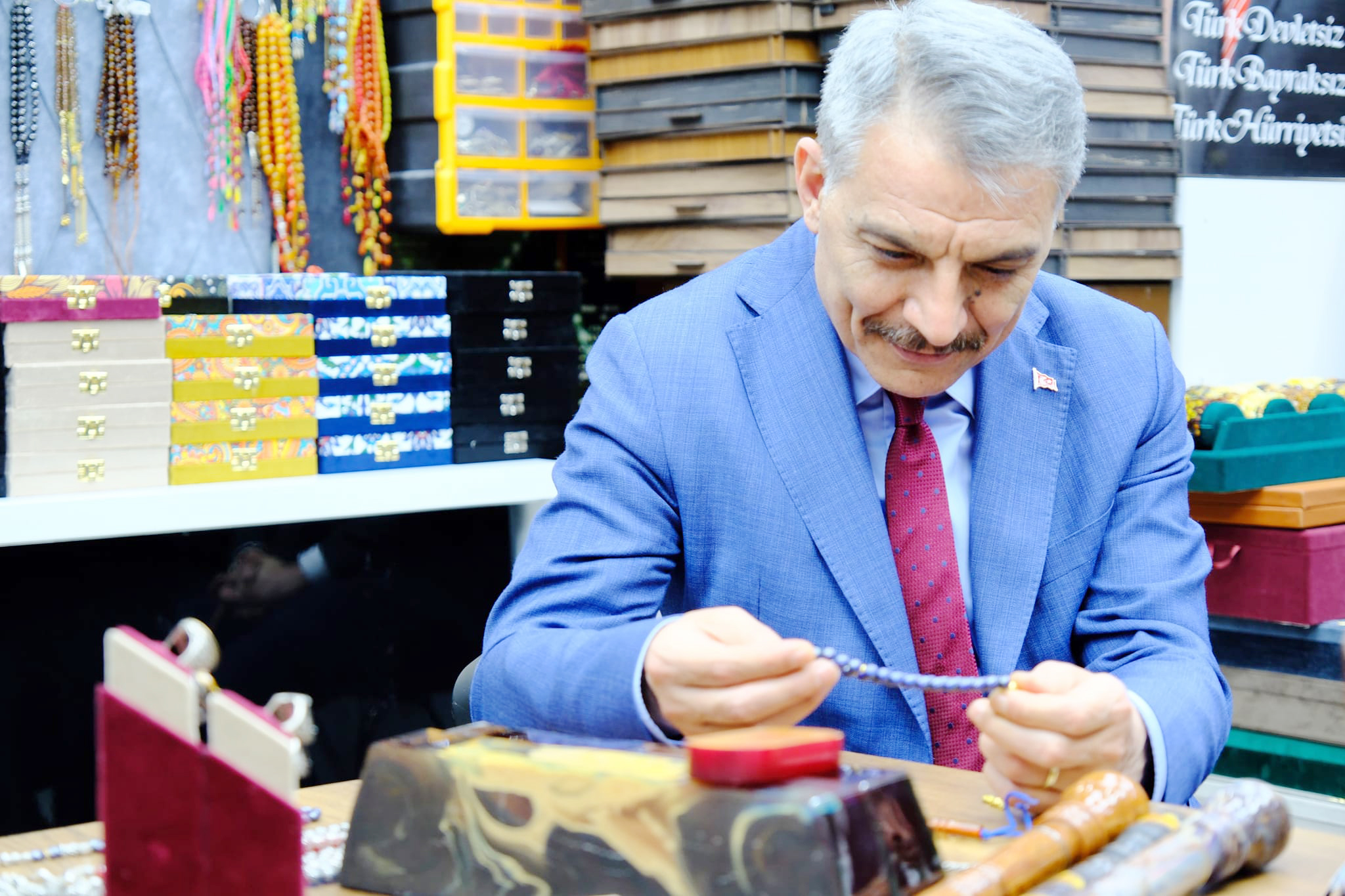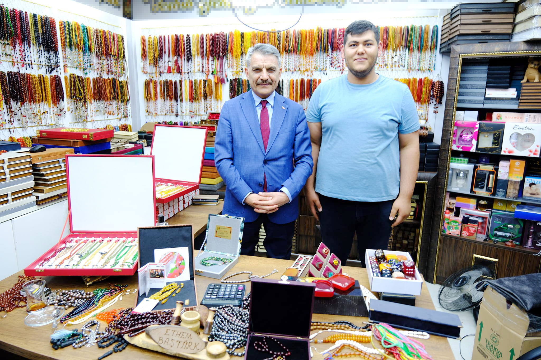 Yozgat Valisi Mehmet Ali Özkan, Yozgat esnafına destek için gerçekleştirdiği ziyaretler kapsamında, tespih imalatı ve satışı yapan bir işletmeyi ziyaret etti.