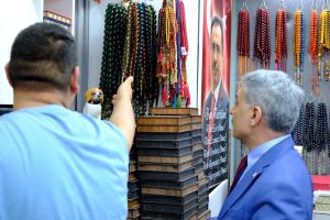 Ziyaret esnasında iş yeri sahibi ile bir araya gelen Vali Özkan, işletmenin faaliyetleri hakkında bilgi aldı. Ziyaret edilen işletme, kehribar ve benzeri malzemelerden tespih imalatı yaparak hem toptan hem de perakende satış gerçekleştiriyor. Vali Özkan, imal edilen tespihleri ve kullanılan malzemeleri yakından inceledi. İş yeri sahibinden imalat süreci ve kullanılan malzemelerin özellikleri hakkında bilgi aldı.