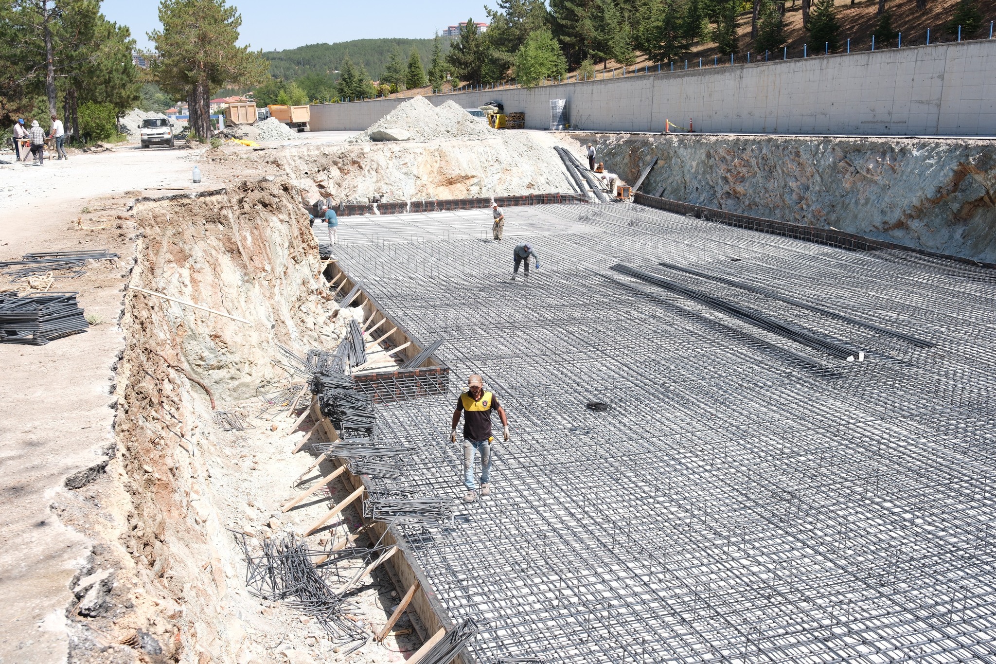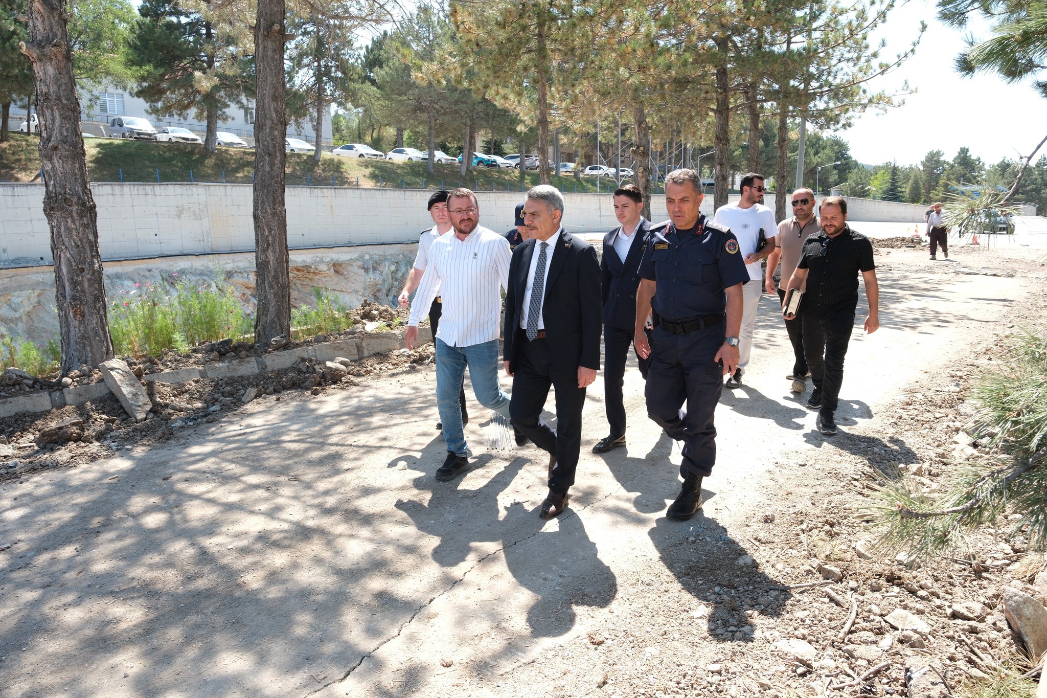 Vali Özkan, beraberindeki heyetle birlikte yürütülen çalışmaları yerinde görerek, yüklenici firma yetkililerinden ve İl Jandarma Komutanı Albay Cezmi Yalınkılıç’tan bilgi aldı.